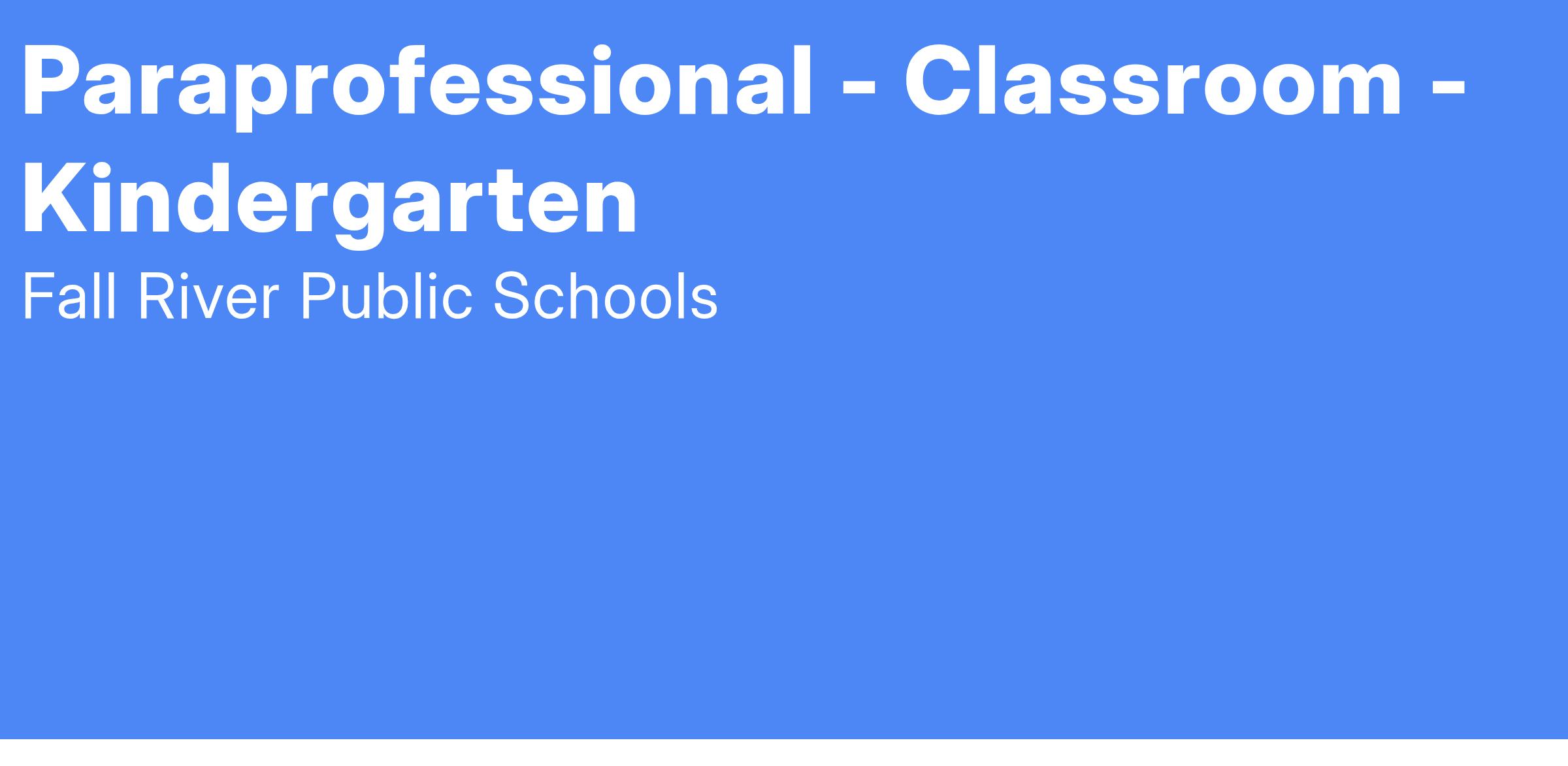 SALARY AND TERMS OF EMPLOYMENTIn accordance with the  Fall River Paraprofessionals contract.  Employment is contingent upon job performance, program needs, and funding. Salary includes a 183 day work year, with 210 paid days per year (including vacation and paid holidays).