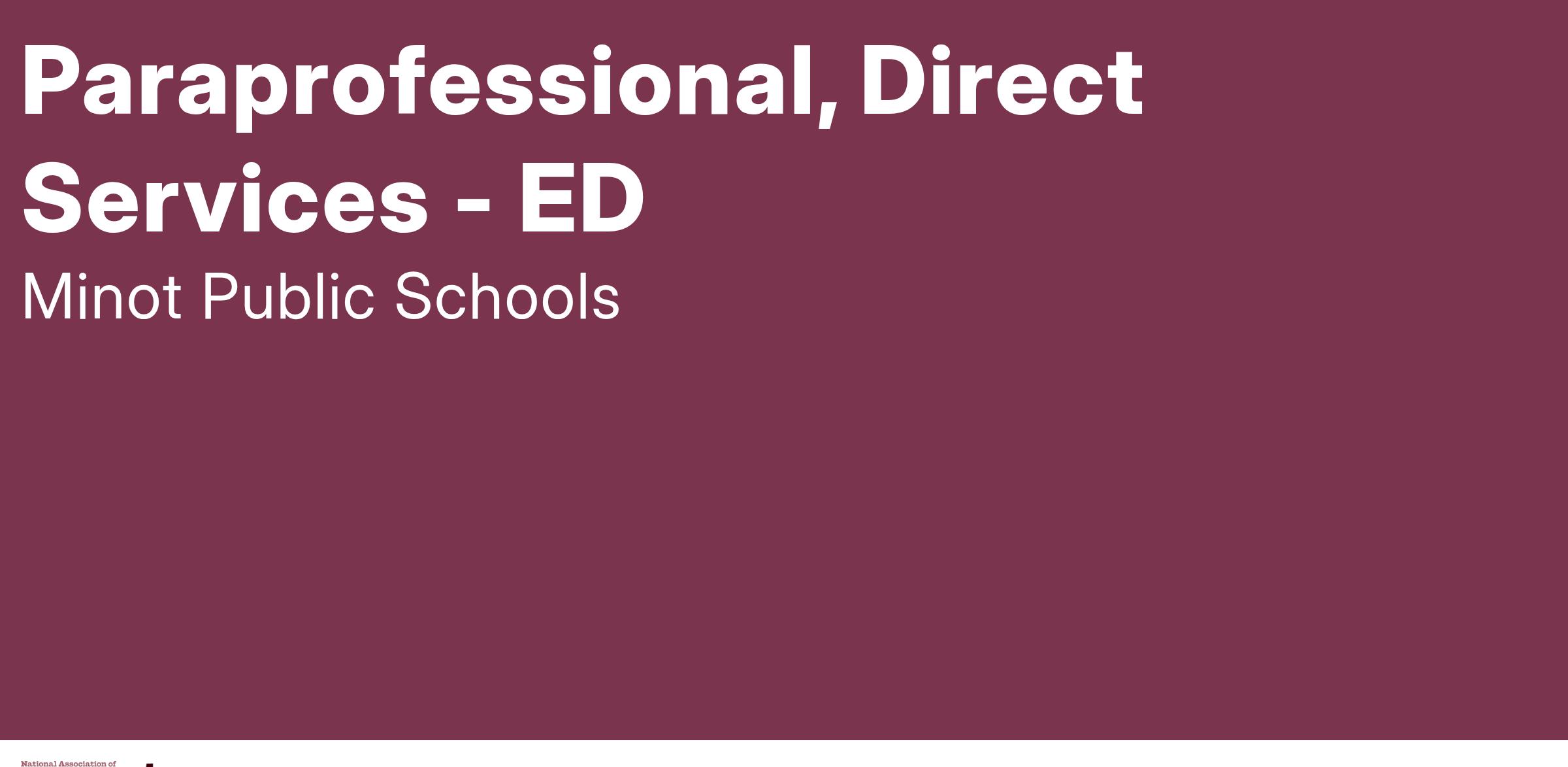 A valid North Dakota State Driver’s License may be required, Paraprofessional certification from North Dakota Department of Public Instruction is required; Crisis Prevention intervention [CPI] training and certification may be required for some incumbents; CPR and First Aid training is preferred.