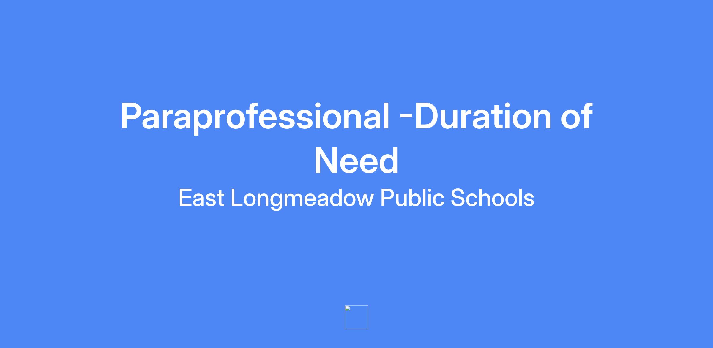 The Role: Mapleshade Elementary School is looking for a positive, engaging, student-friendly paraprofessional to join our school. East Longmeadow Public Schools is a district that values diversity of thought, leadership, and representation. We prioritize inclusivity, embrace diversity, and promote an equitable approach toward meeting the needs of every child in our district. It is our belief that to make education equitable, we must exhibit anti-racism within the classroom, across professional development opportunities, and to our families. As a result, every ELPS student will develop the knowledge and critical thinking skills that will ensure them success across post-secondary experiences, career trajectory, and to be prepared for adult-life as a responsible and active citizen. This paraprofessional position will run from January 5, 2026-May 1, 2026.
