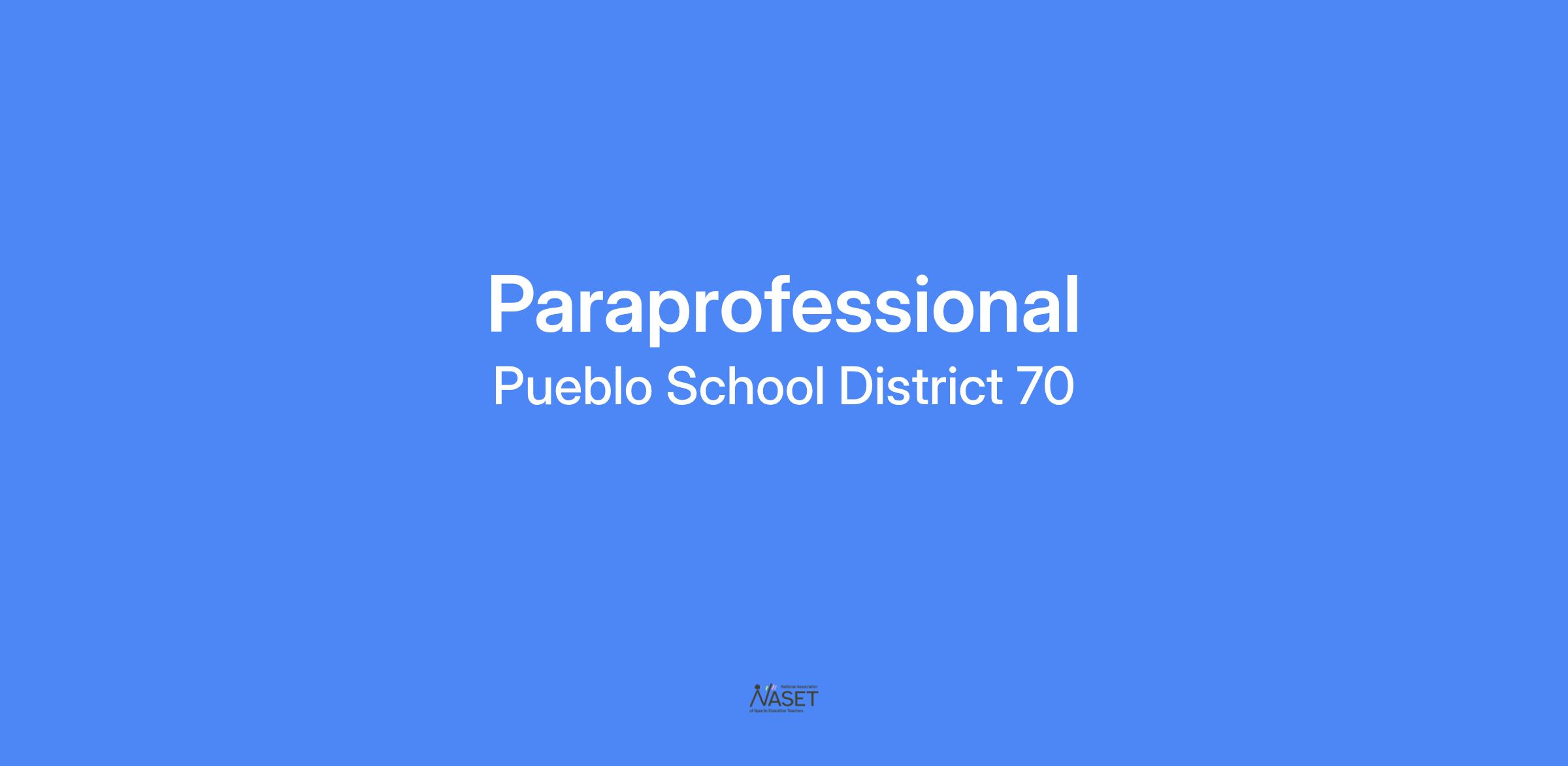 Reasonable accommodations may be made to enable individuals with disabilities to perform the essential functions under ADA. Inquiries about accommodations may be addressed to the Department of Personnel Services, 24951 Highway 50 East, Pueblo, Colorado, 81006 or hr@district70.org.