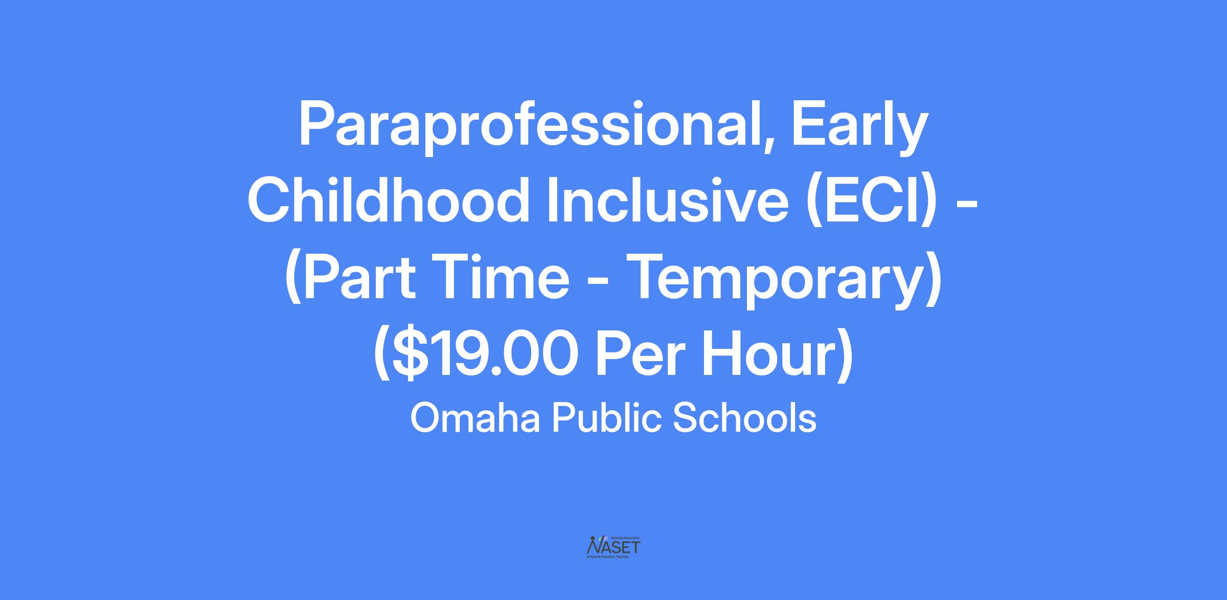 POSITION TITLE: Paraprofessional - Early Childhood Inclusive (ECI)