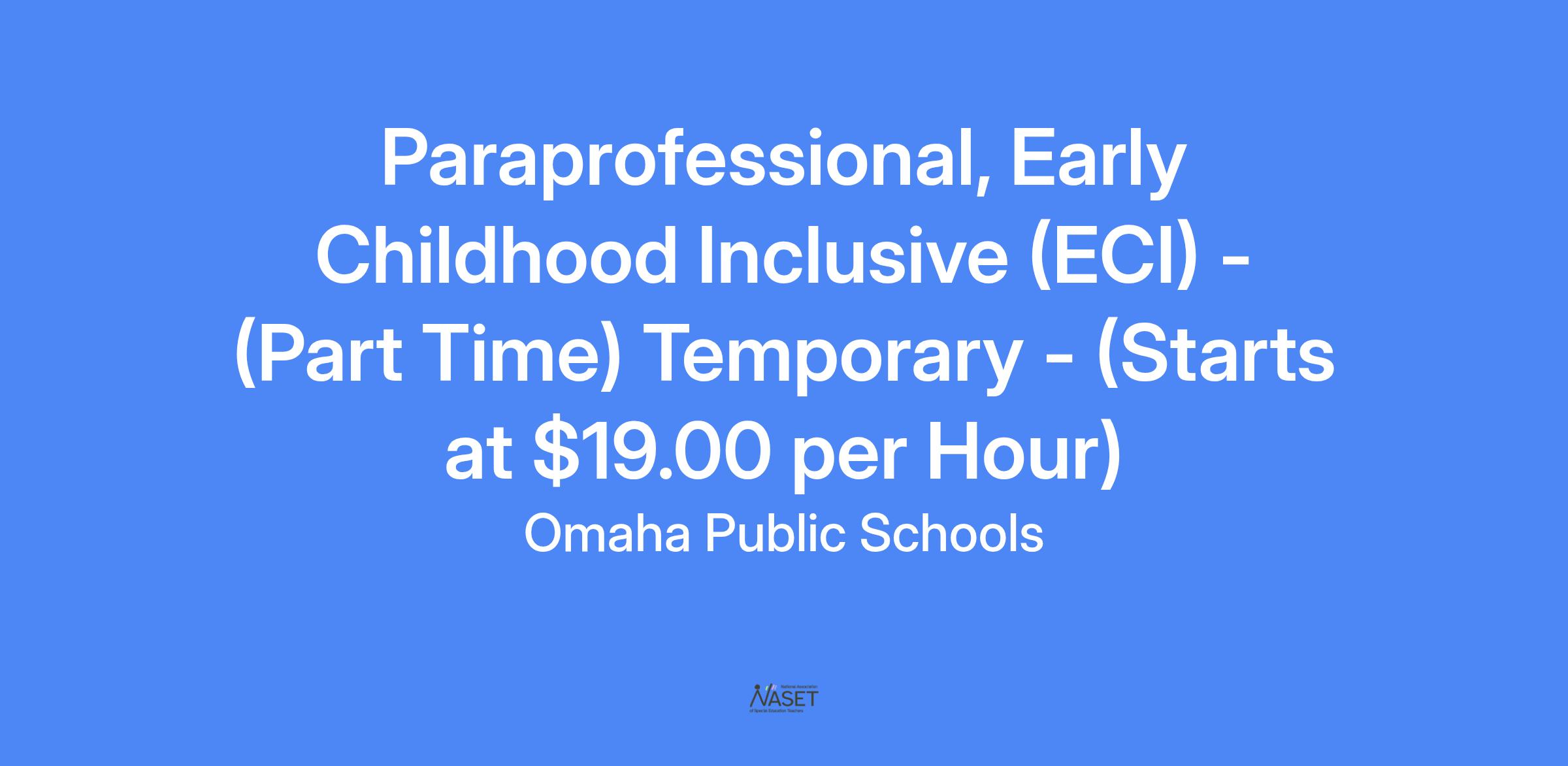 POSITION TITLE: Paraprofessional - Early Childhood Inclusive (ECI)