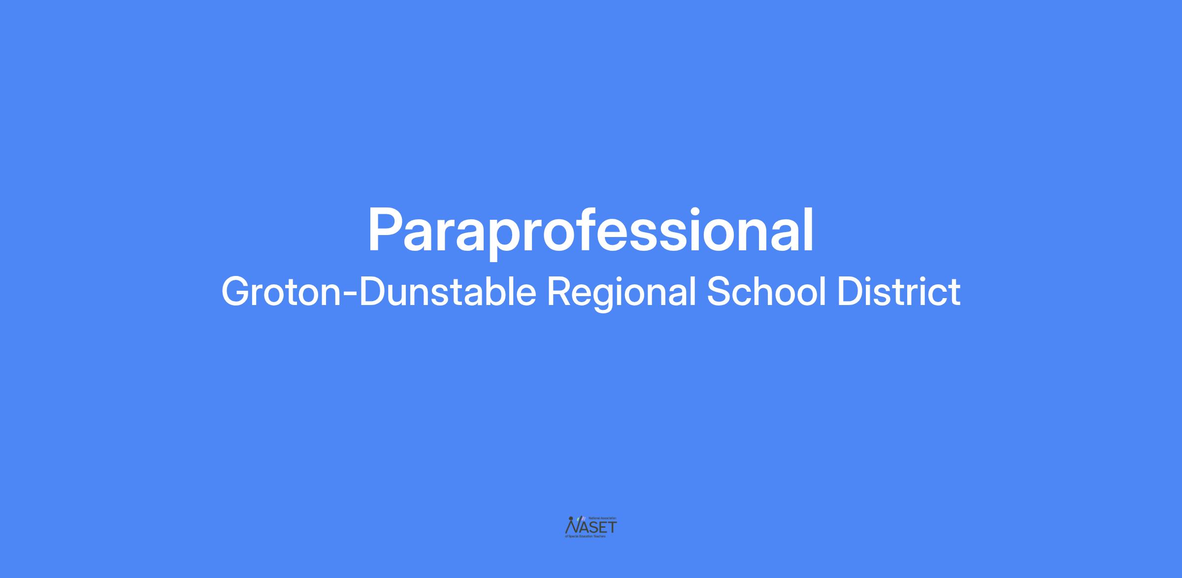 The Groton-Dunstable Regional School District has an opening for a Paraprofessional at the Groton-Dunstable Regional Middle School for the 2025-2026 school year. Salary in accordance with the Unit D contract. $19.20-$29.79 per hour based on experience.