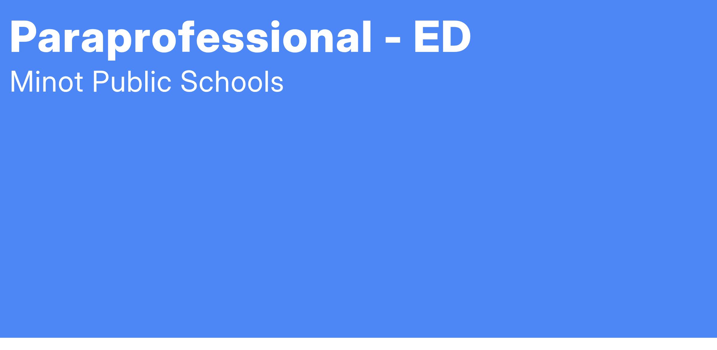 A valid North Dakota State Driver’s License may be required, Paraprofessional certification from North Dakota Department of Public Instruction is required; Crisis Prevention intervention [CPI] training and certification may be required for some incumbents; CPR and First Aid training is preferred.