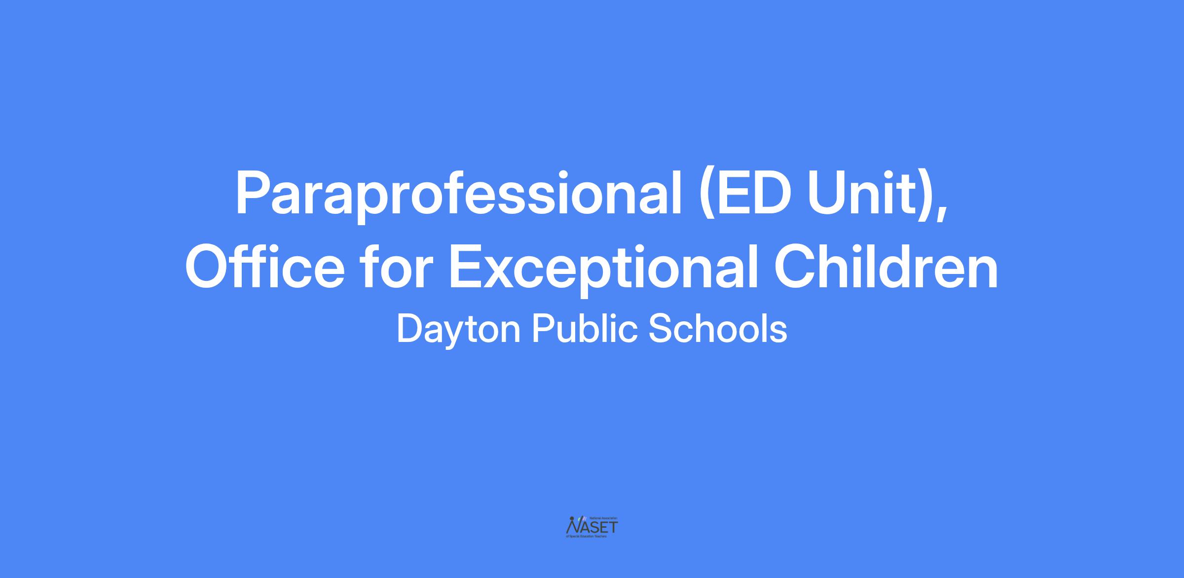 Dayton Public Schools is looking for Paraprofessionals to join our district. Under the general supervision of the building principal, paraprofessionals are to assist in the education and learning of our students.