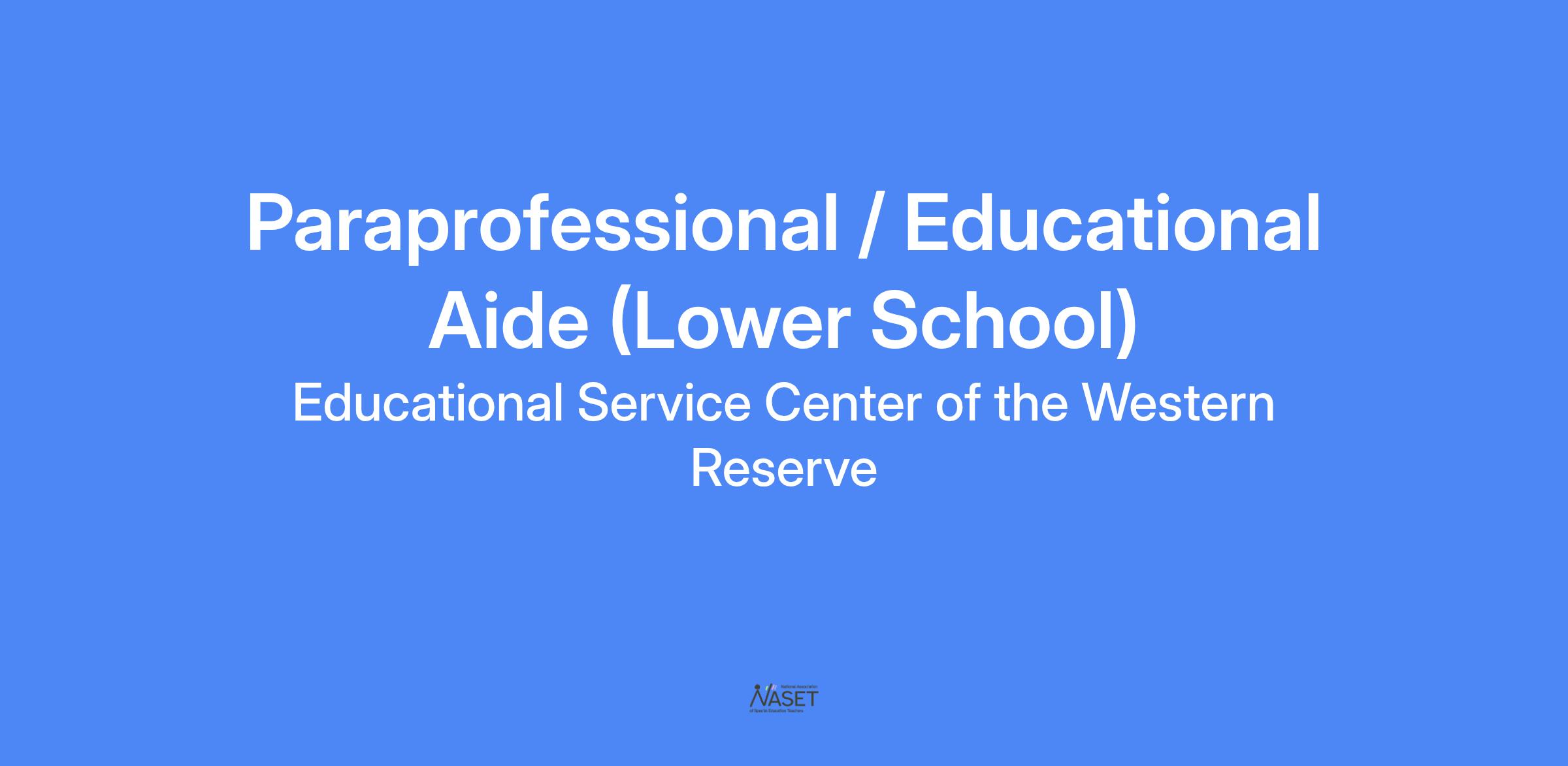ESC of the Western Reserve Paraprofessional / Aide - Part Time or Full Time Available