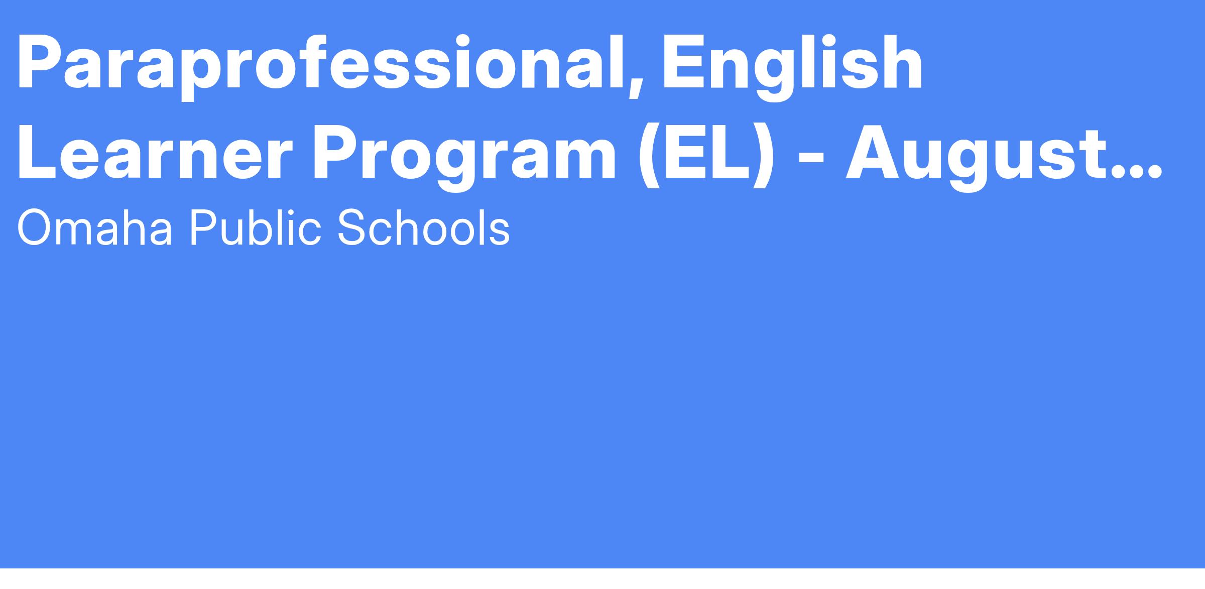 POSITION/JOB TITLE: English Learner Program (EL) Educational Paraprofessional