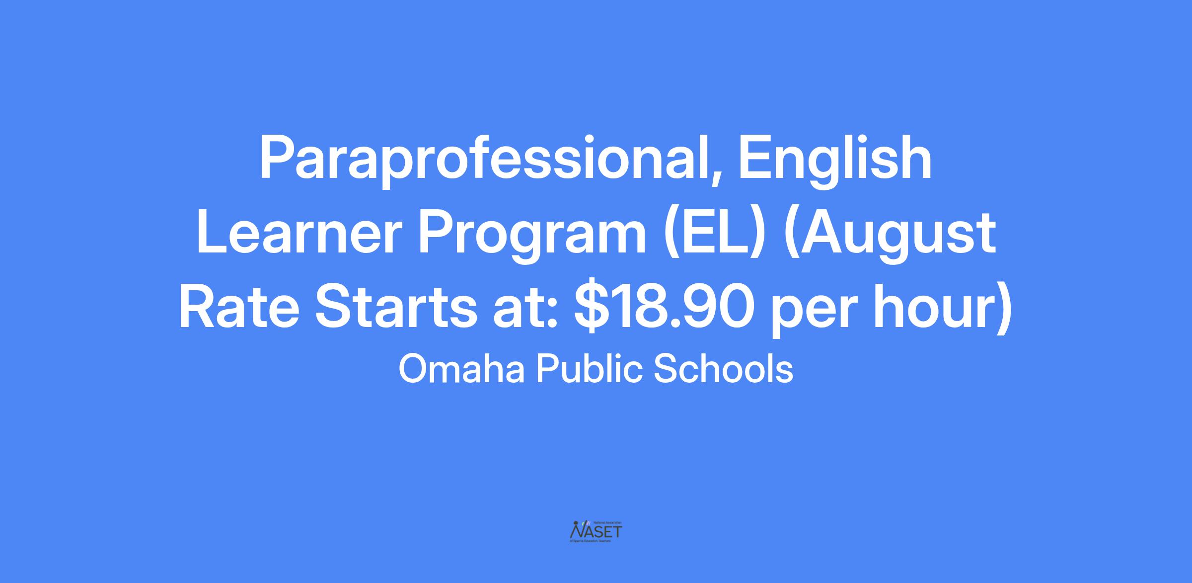 POSITION/JOB TITLE: English Learner Program (EL) Educational Paraprofessional