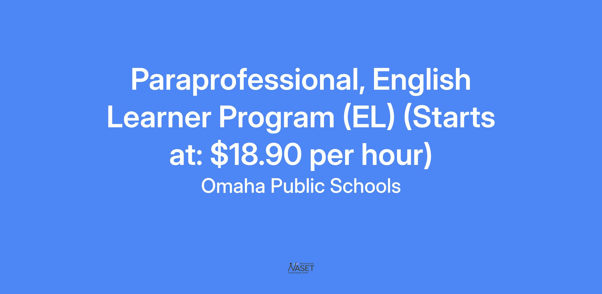 POSITION/JOB TITLE: English Learner Program (EL) Educational Paraprofessional