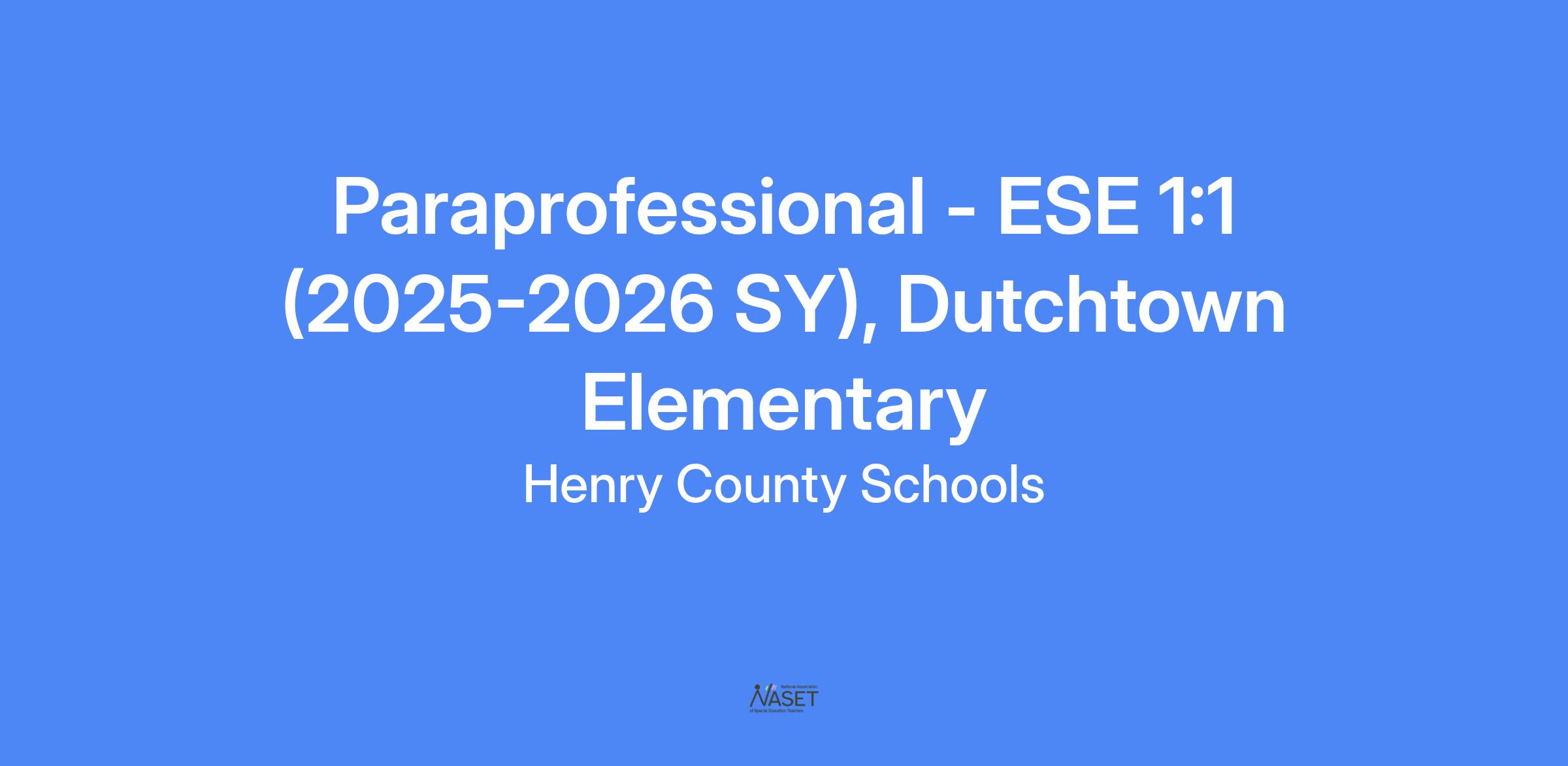 Paraprofessional - ESE 1:1 (2025-2026 SY), Dutchtown Elementary