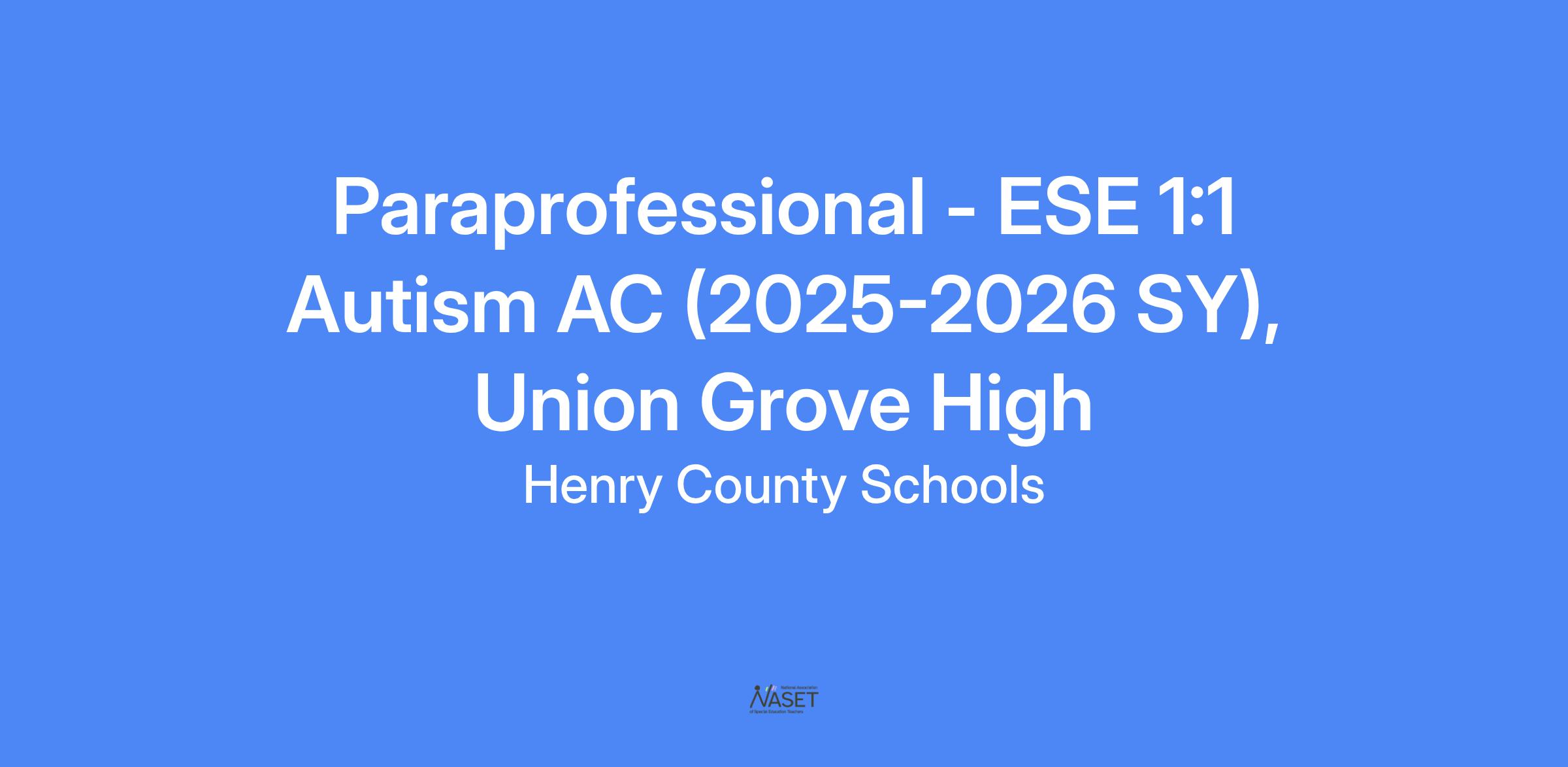 Position Title: Paraprofessional I and II, Exceptional Student Education