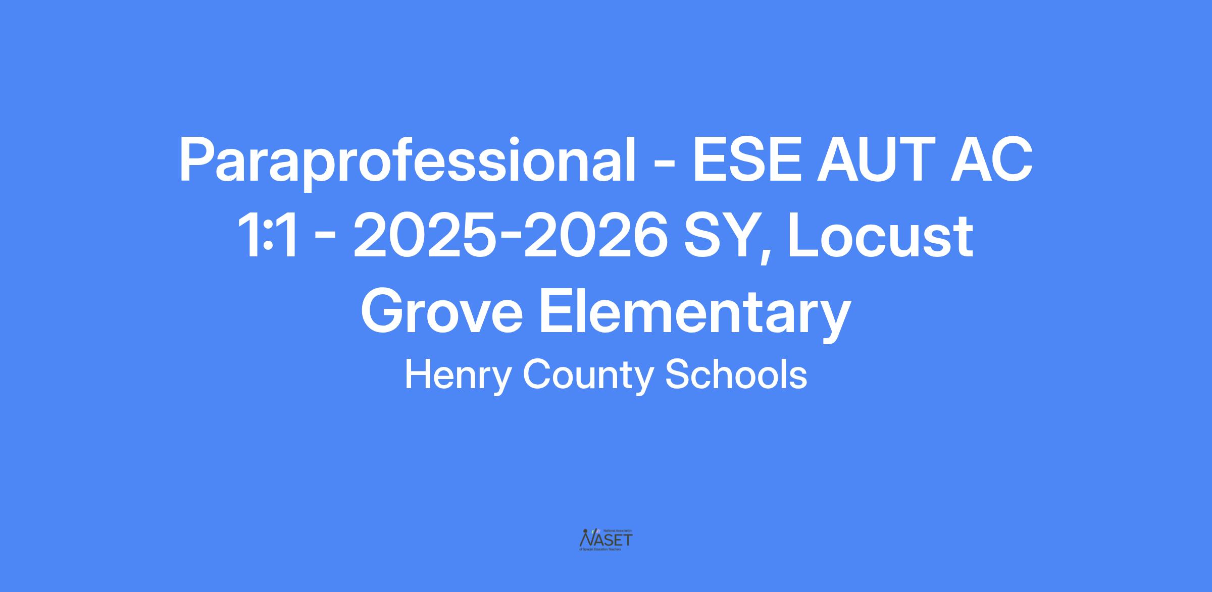 Paraprofessional - ESE AUT AC 1:1 - 2025-2026 SY, Locust Grove Elementary
