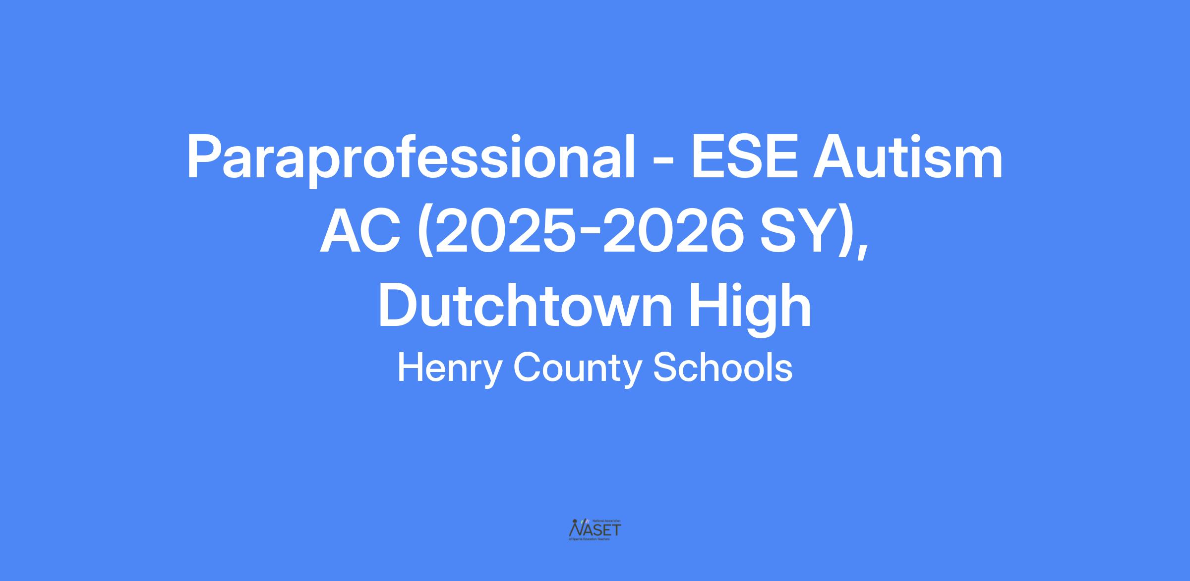 Position Title: Paraprofessional I and II, Exceptional Student Education