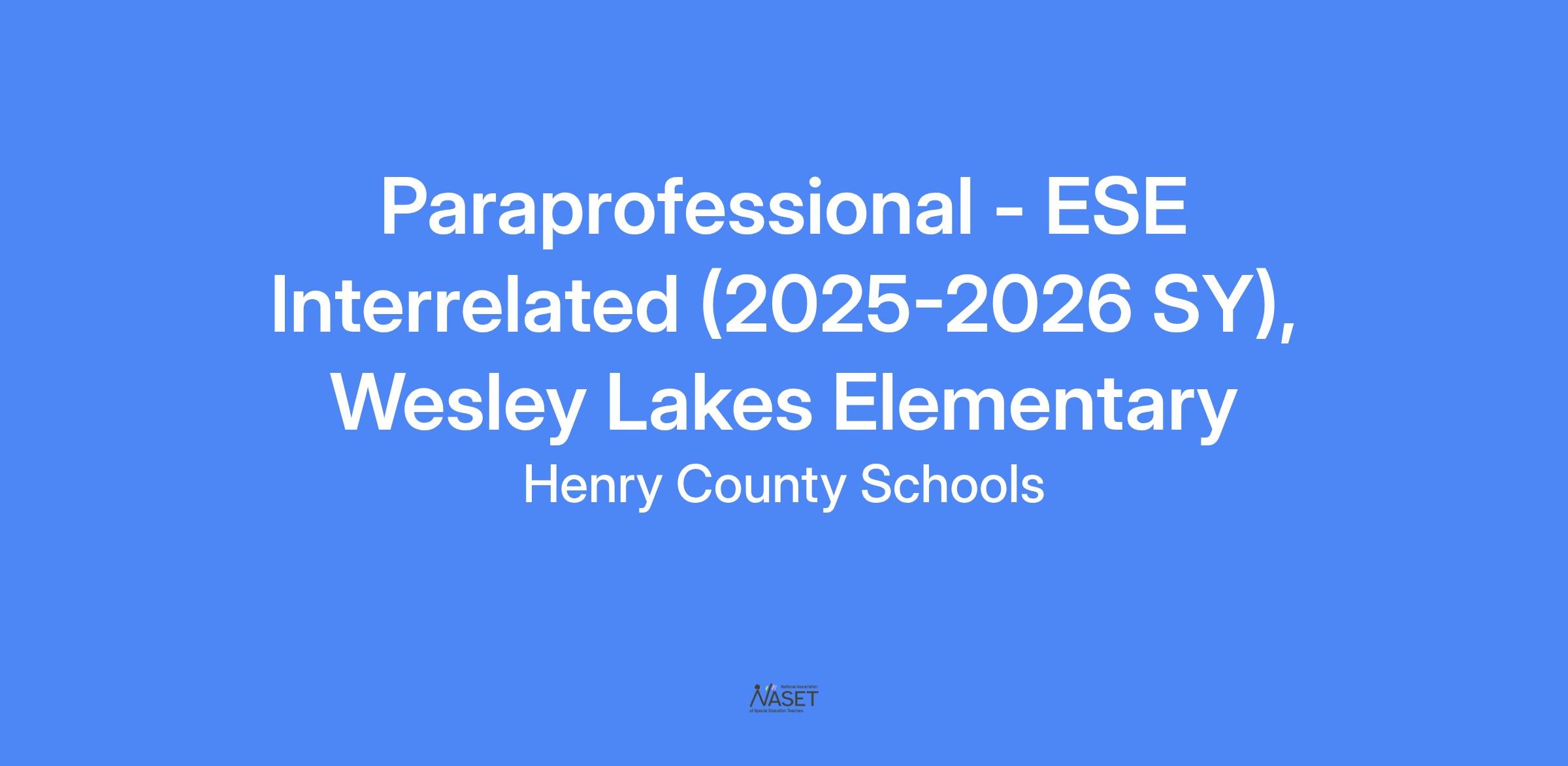 Position Title: Paraprofessional I and II, Exceptional Student Education
