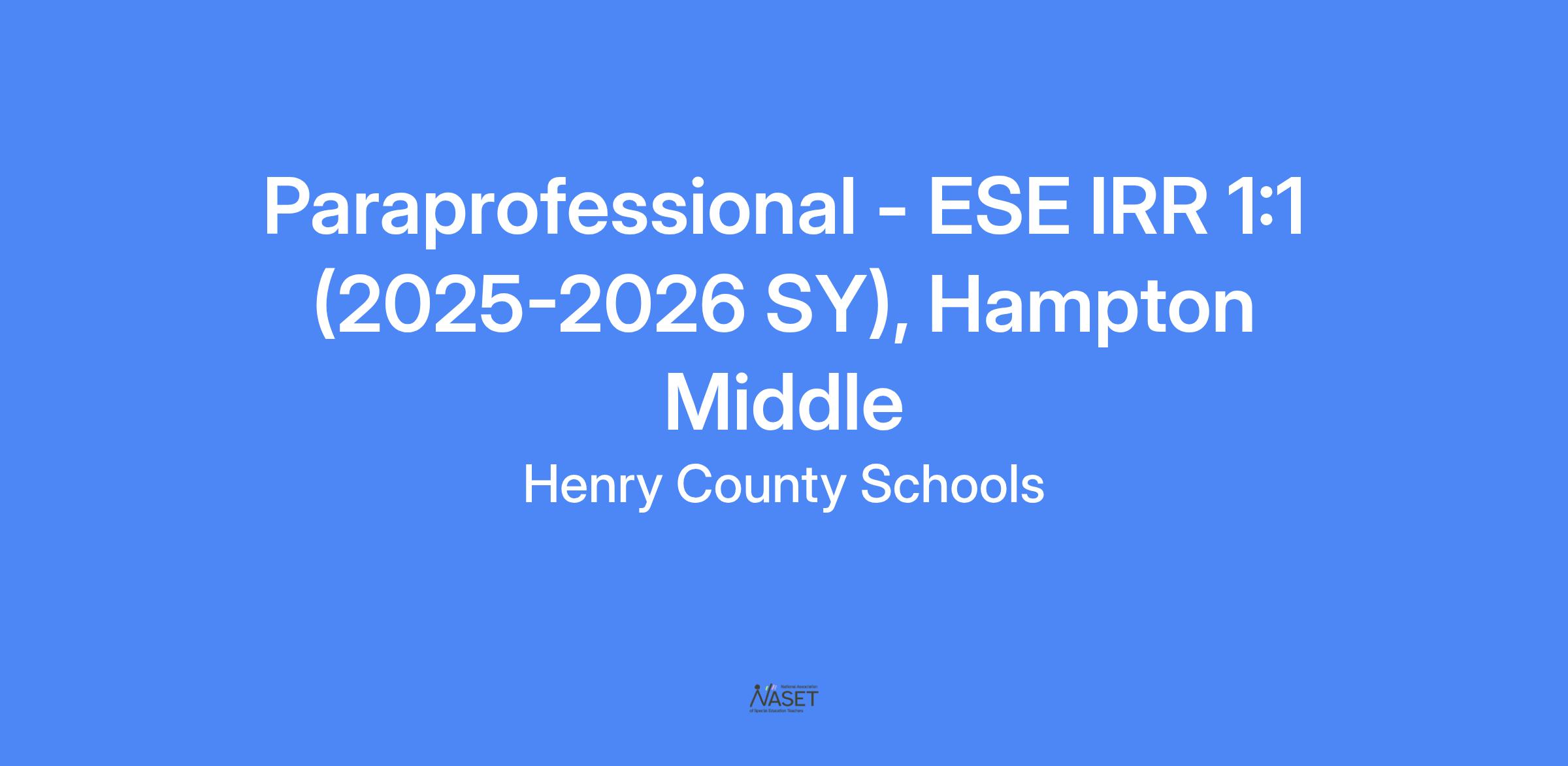 Position Title: Paraprofessional I and II, Exceptional Student Education