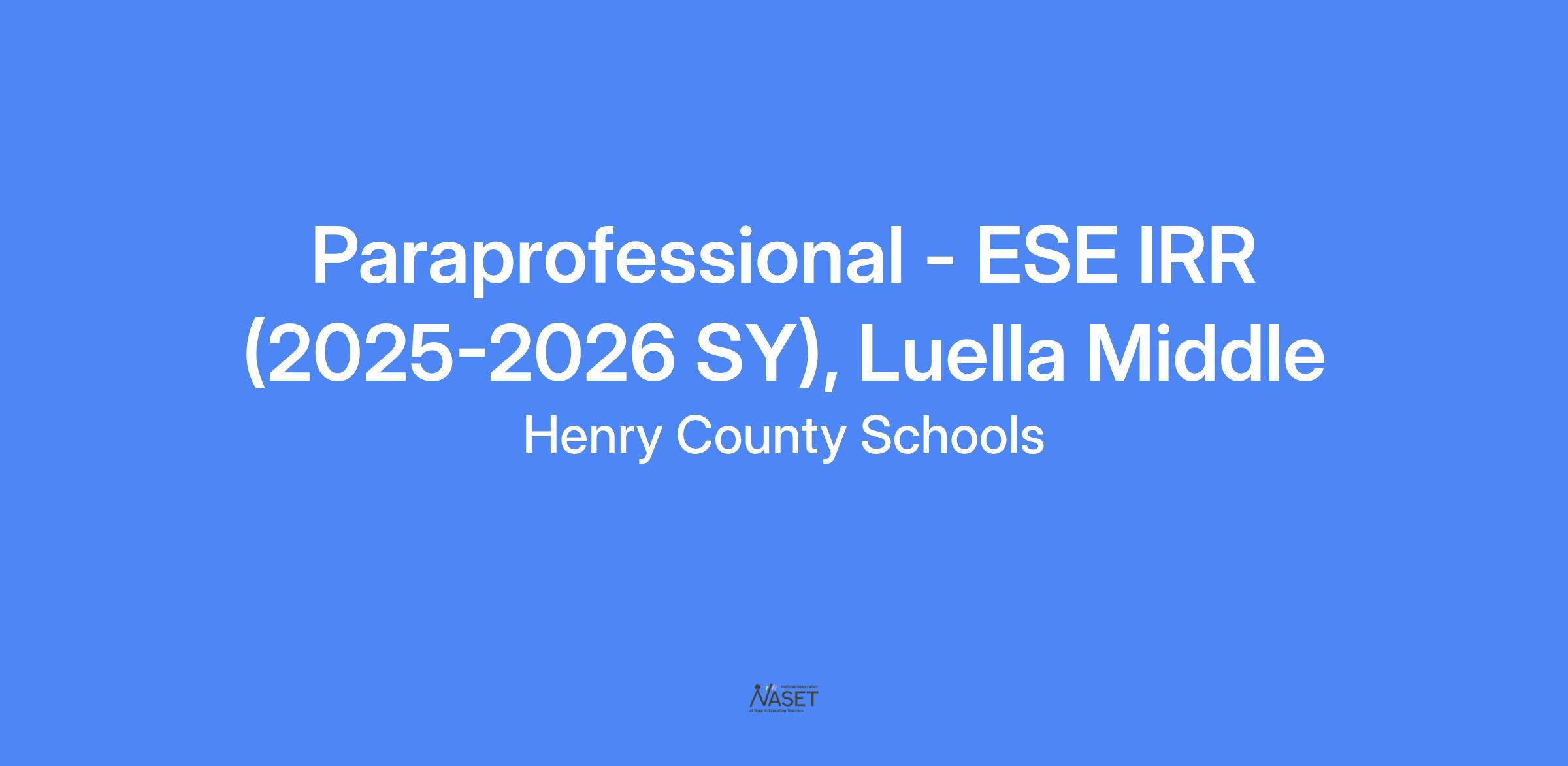 Position Title: Paraprofessional I and II, Exceptional Student Education