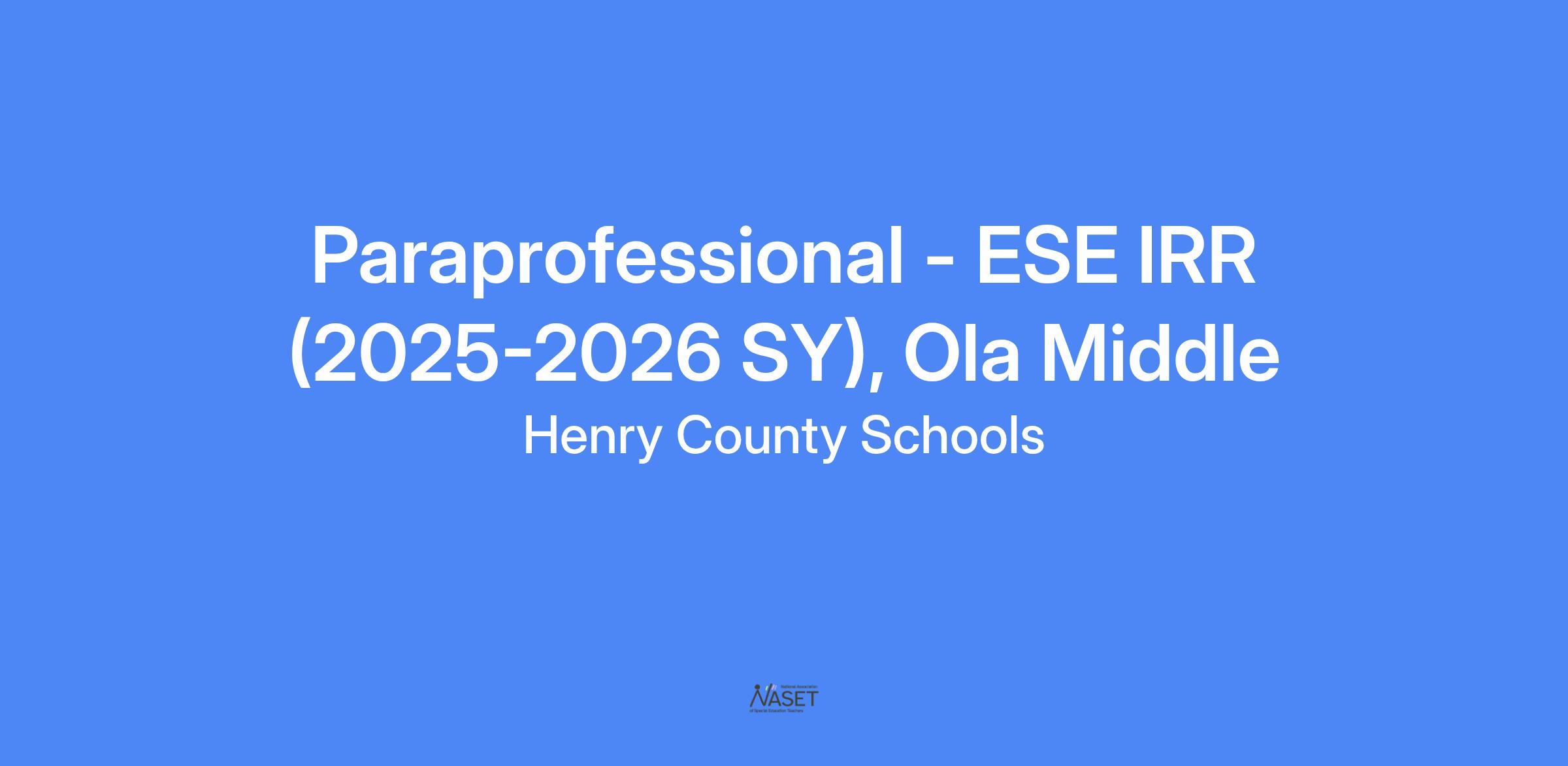 Position Title: Paraprofessional I and II, Exceptional Student Education