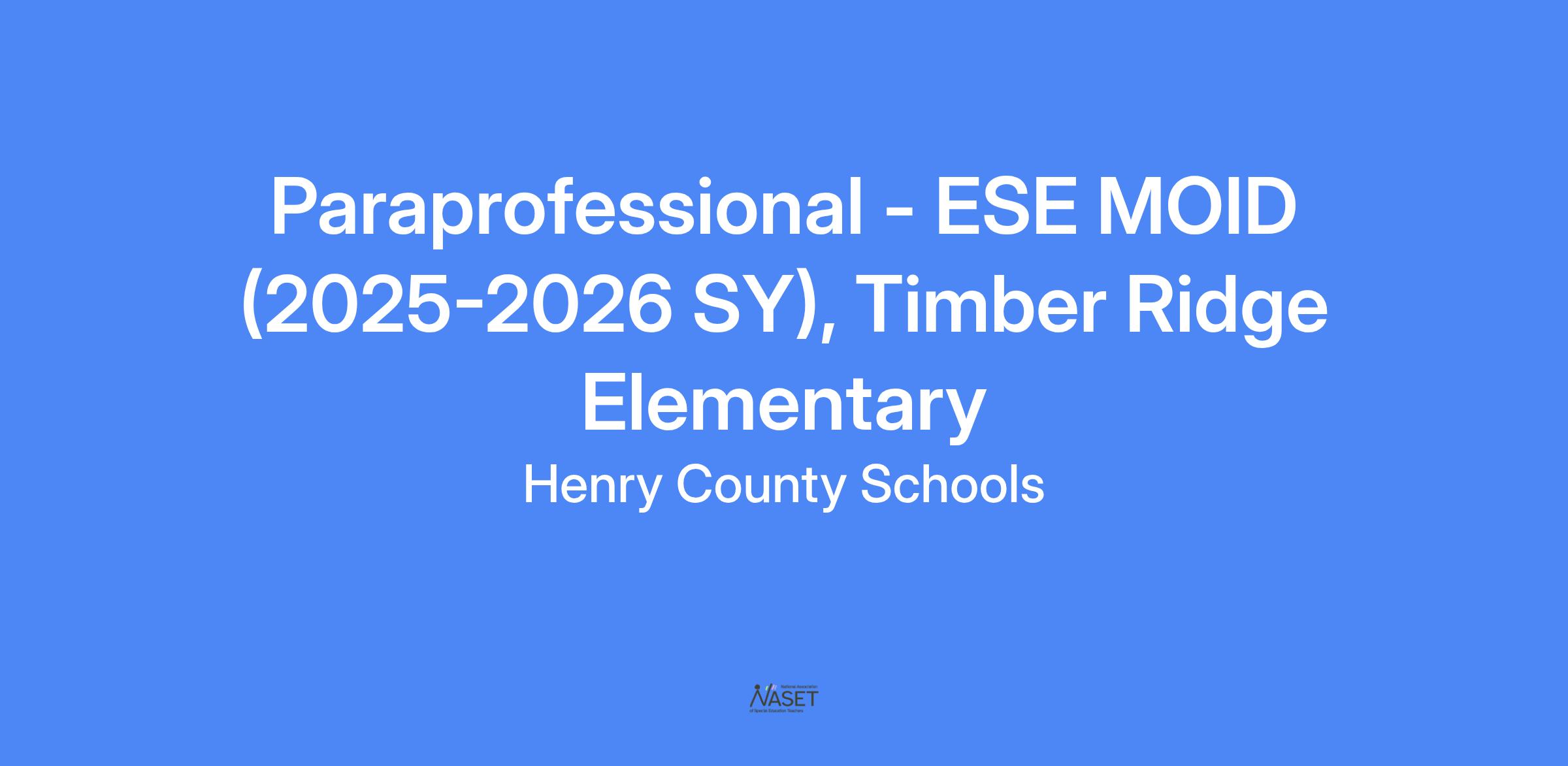Position Title: Paraprofessional I and II, Exceptional Student Education