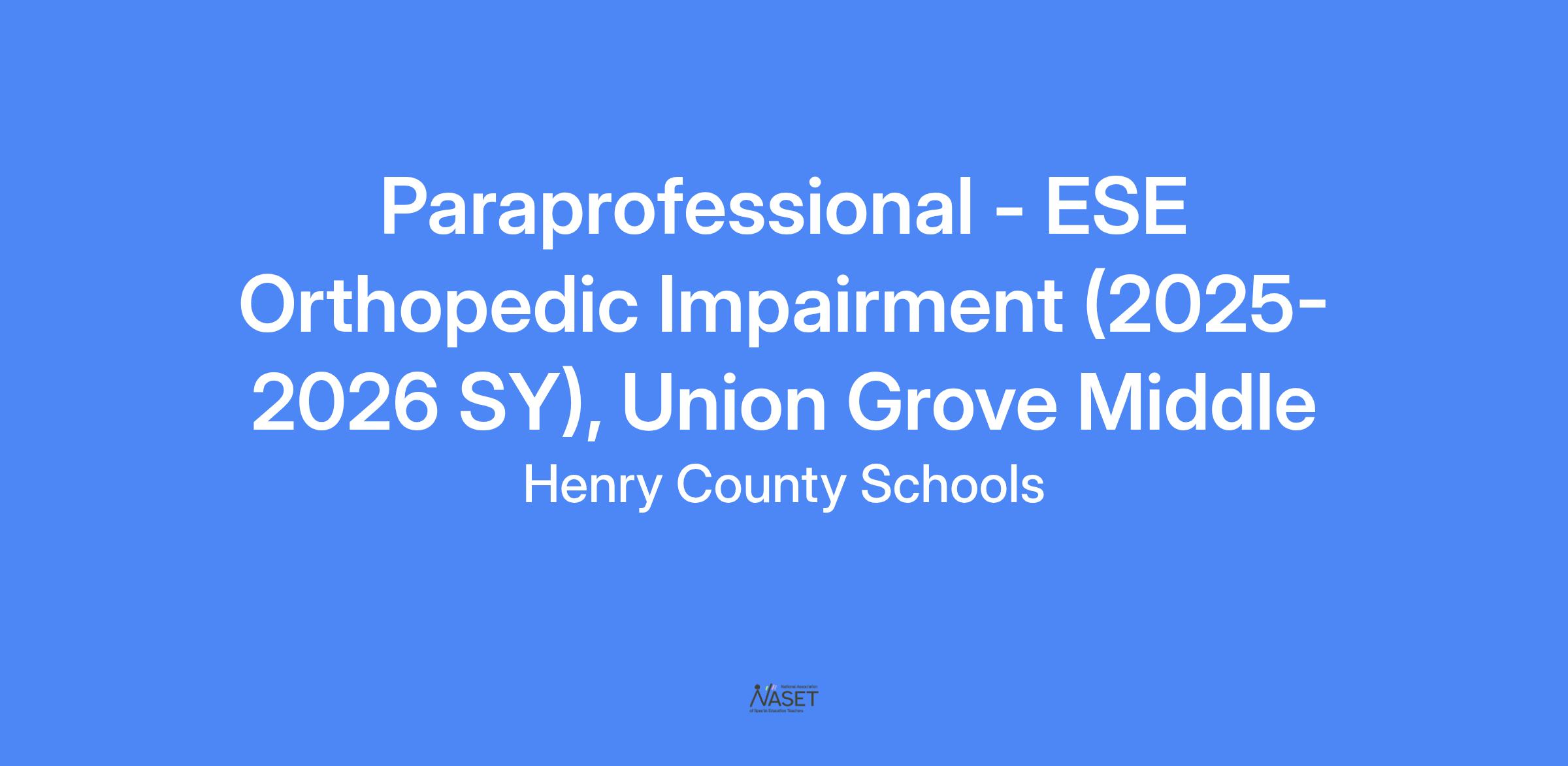 Position Title: Paraprofessional I and II, Exceptional Student Education