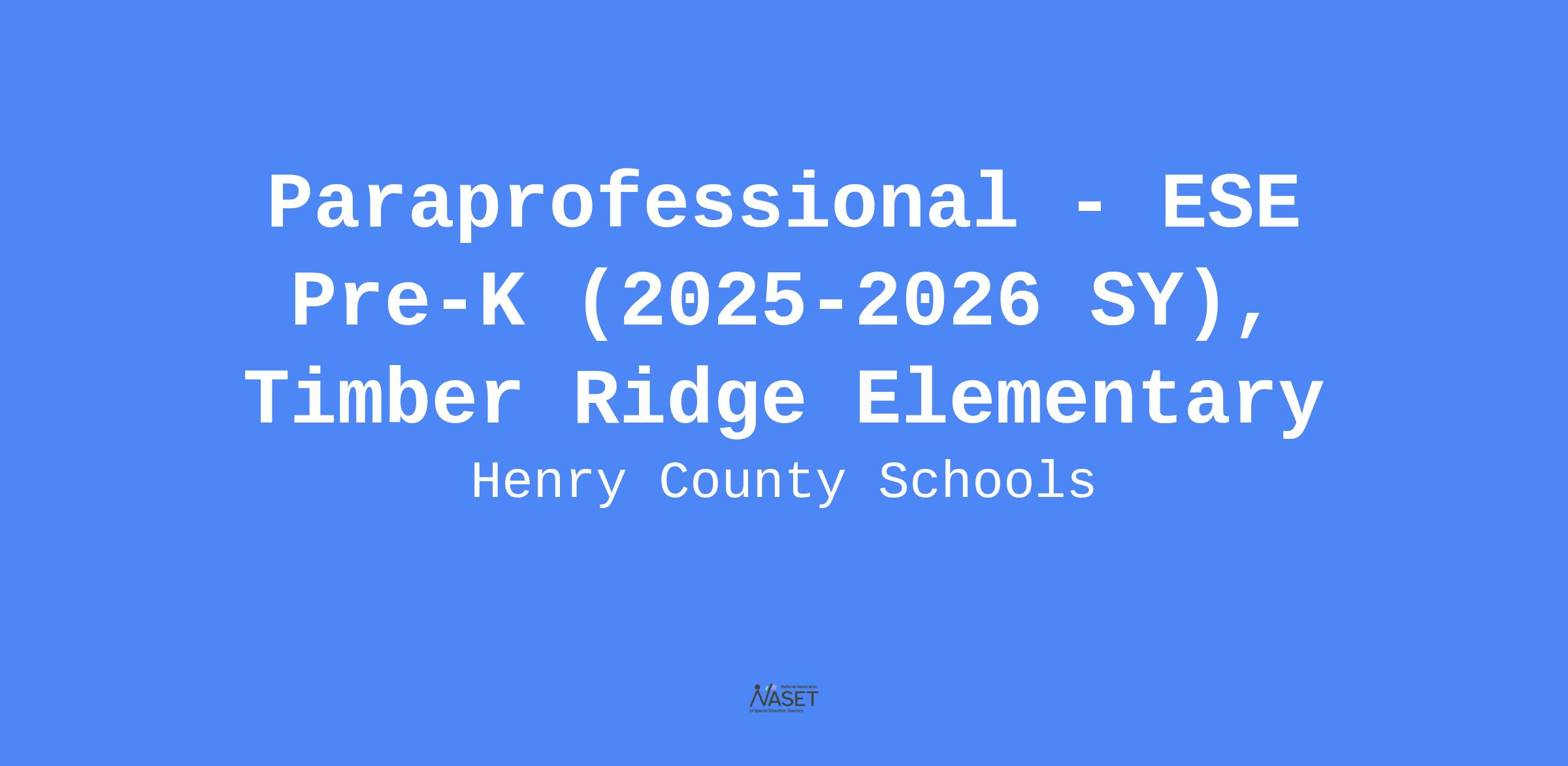 Position Title: Paraprofessional I and II, Exceptional Student Education