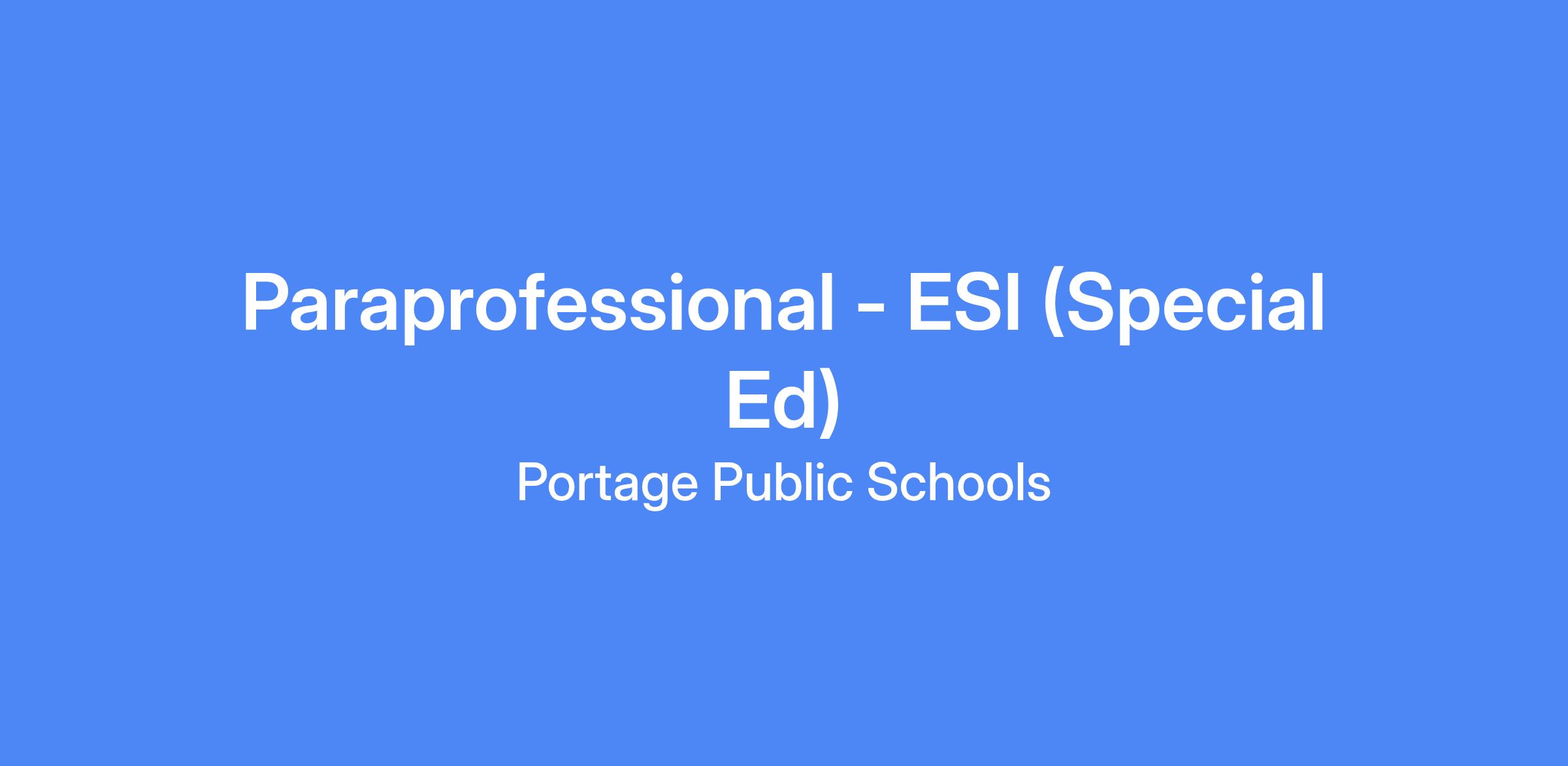Paraprofessional - ESI (Special Education)