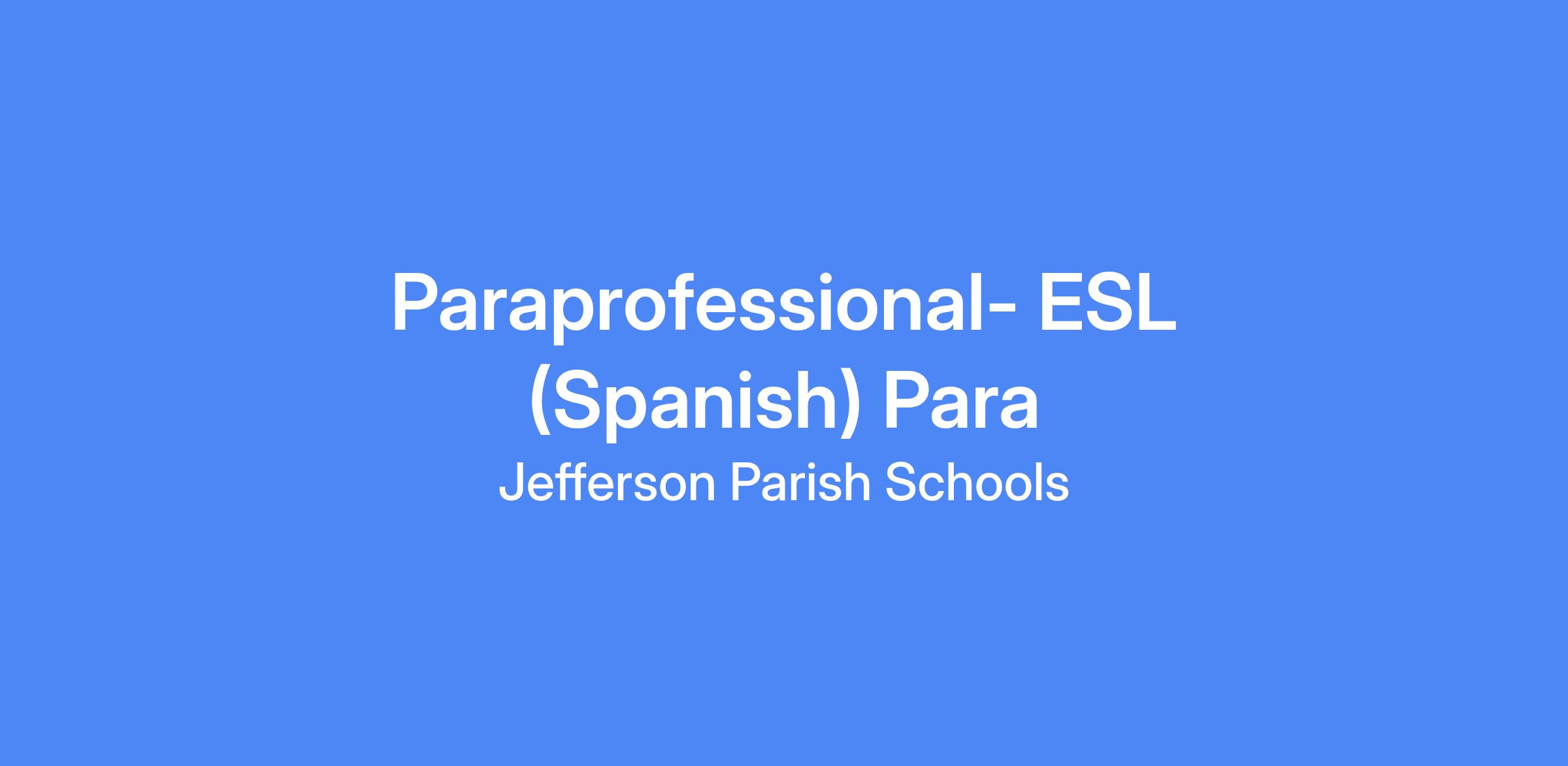 - To be eligible to fill an ESL paraprofessional position, you must pass the language fluency assessment. Please contact Korinna Sanchez at korinna.sanchez@jpschools.org or (504) 349-8562 to schedule the test.
