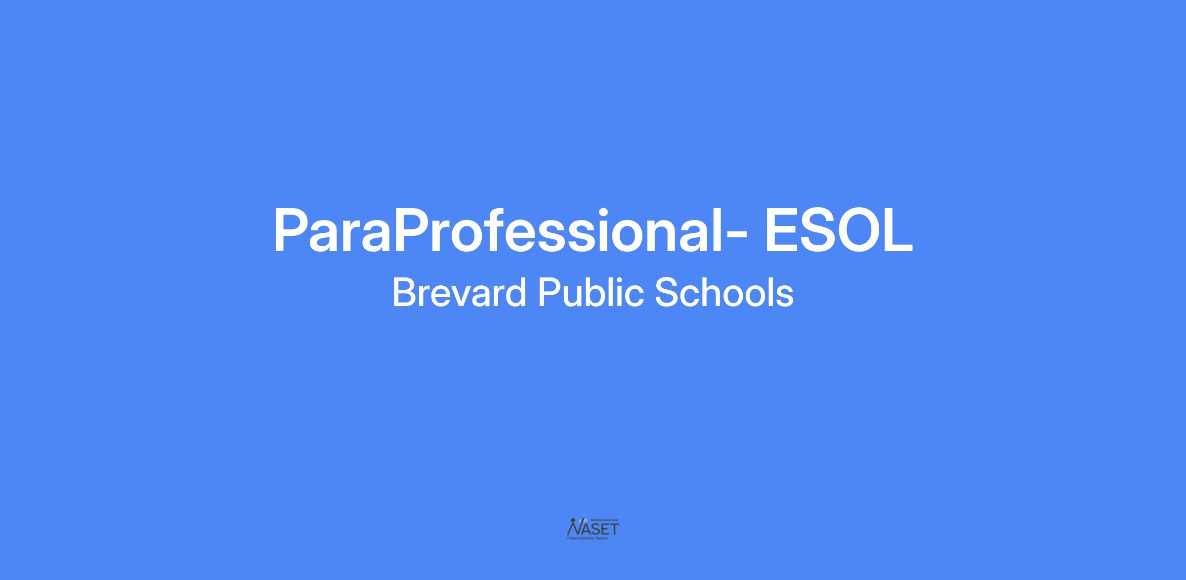 Please view full job description at: https://divisions.brevardschools.org/sites/humanresources/HR External/Approved Job Descriptions/Paraprofessional - ESOL_N4512_05.20.25.pdf