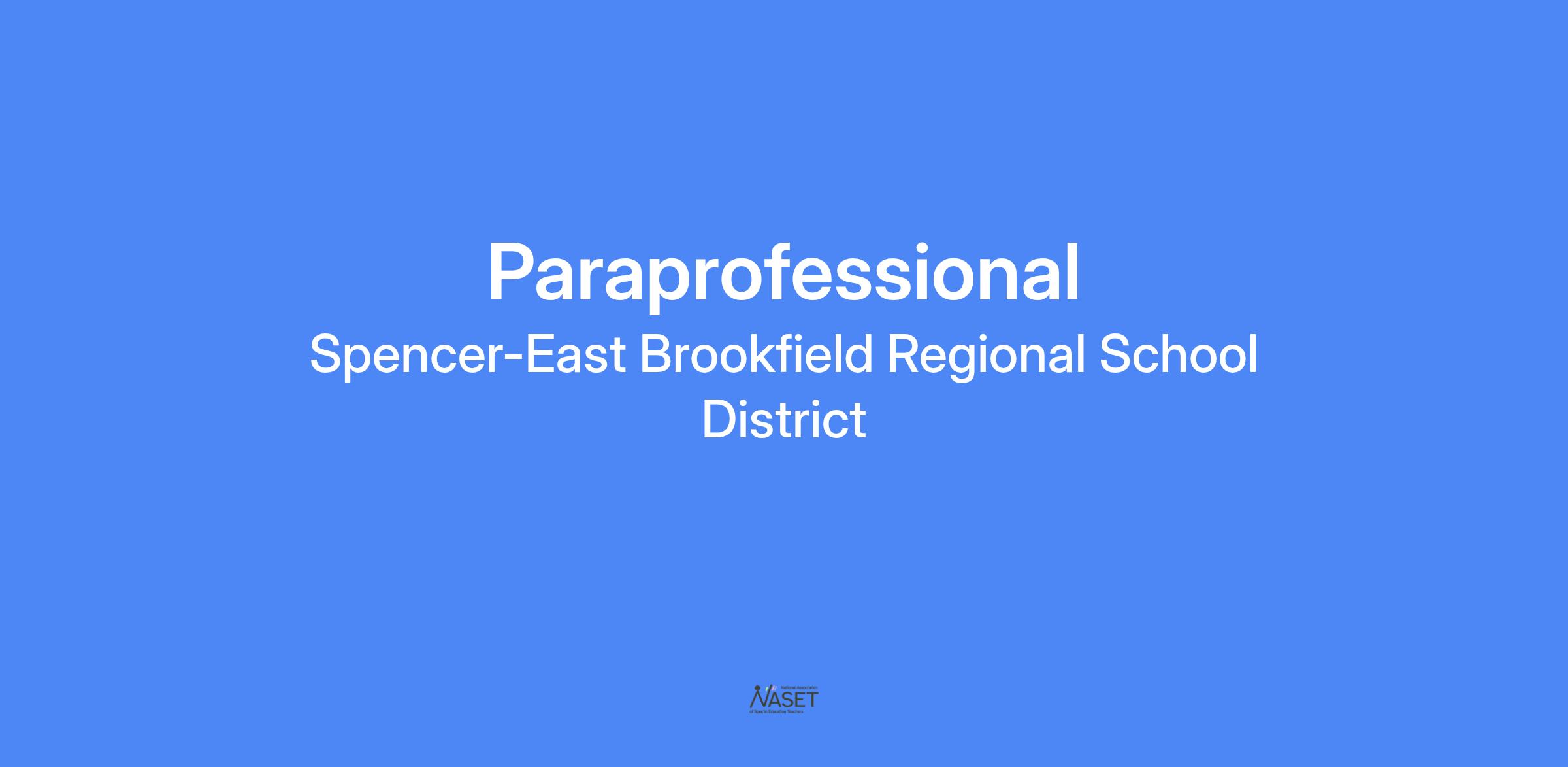 Paraprofessionals in the Spencer-East Brookfield Regional School District have a substantial benefit package including competitive wages, paid holidays, and Professional Development opportunities.