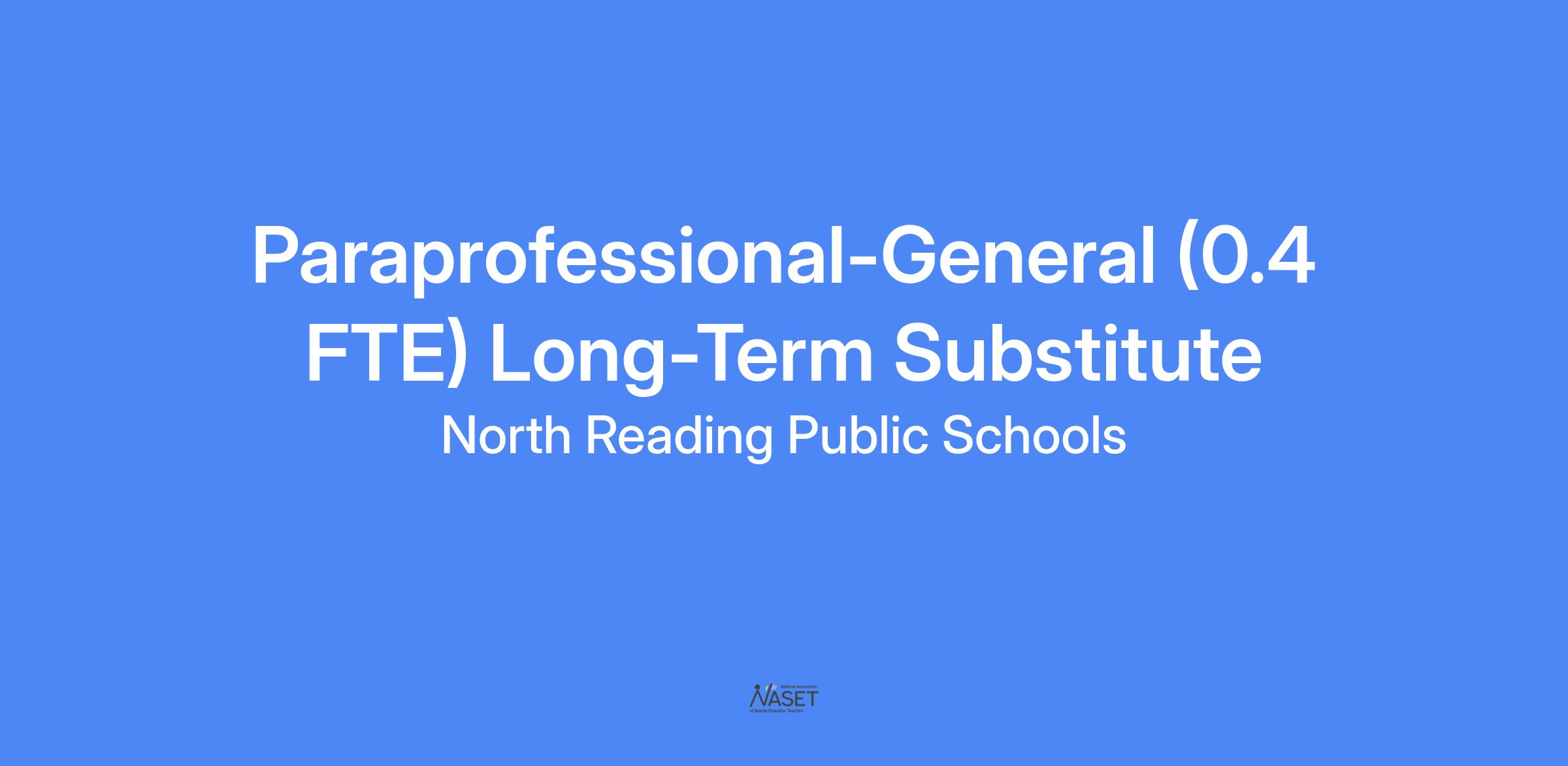 The E. Ethel Little Elementary School is seeking a part-time General Paraprofessional Long-Term Substitute, at 0.4 FTE or approximately 15 hours/week tentatively through November 3, 2025. North Reading Public Schools is actively looking to build a diverse workforce to ensure all students feel welcome, safe, and valued for who they are and supported to reach their potential.