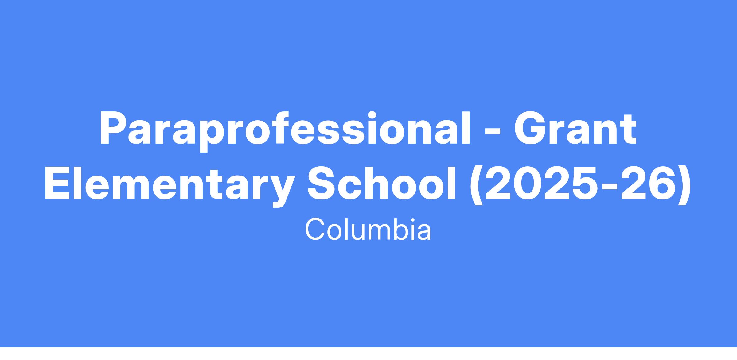 Paraprofessional - Grant Elementary School (2025-26)