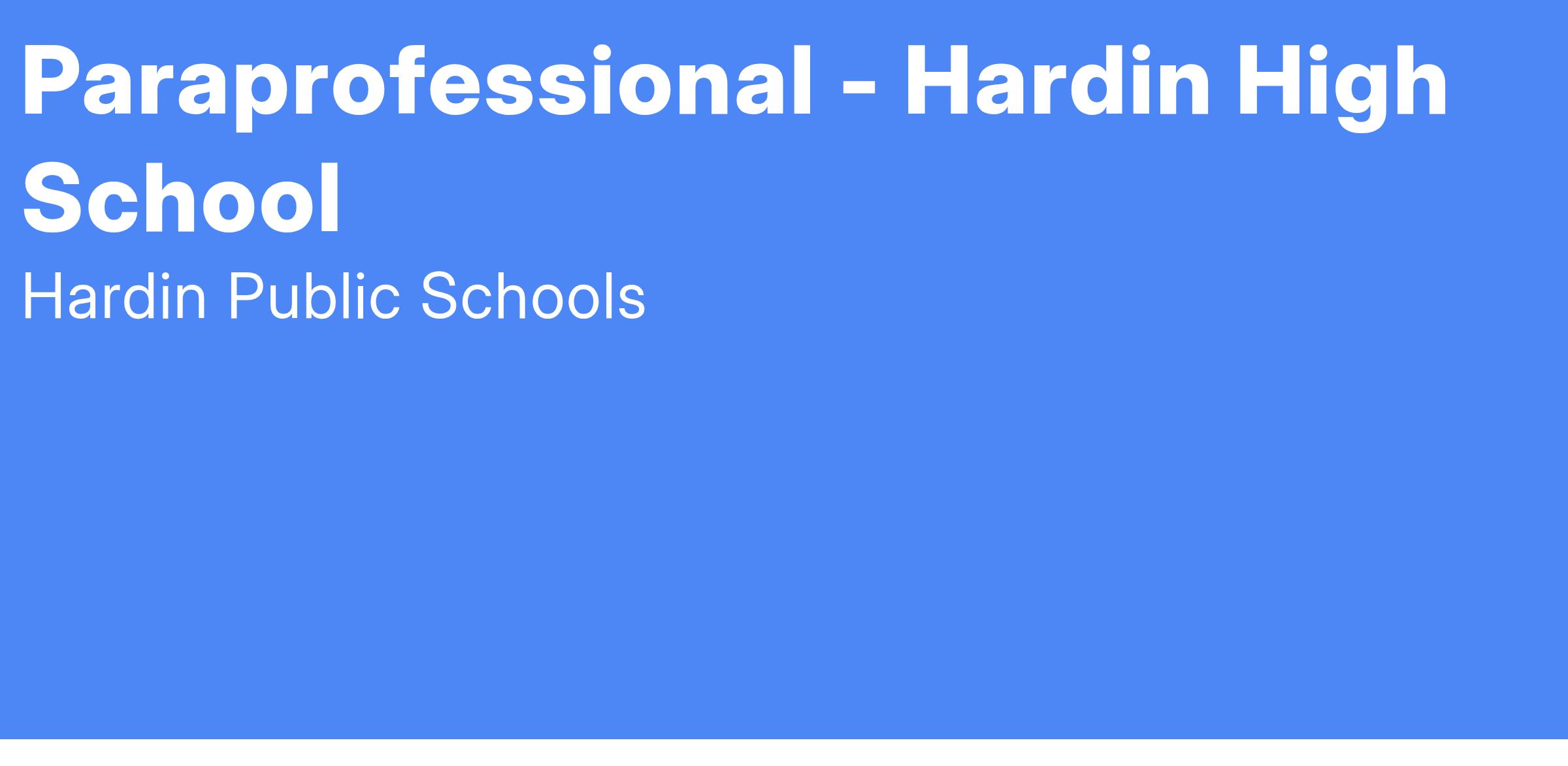 PARAPROFESSIONAL – Hardin High School