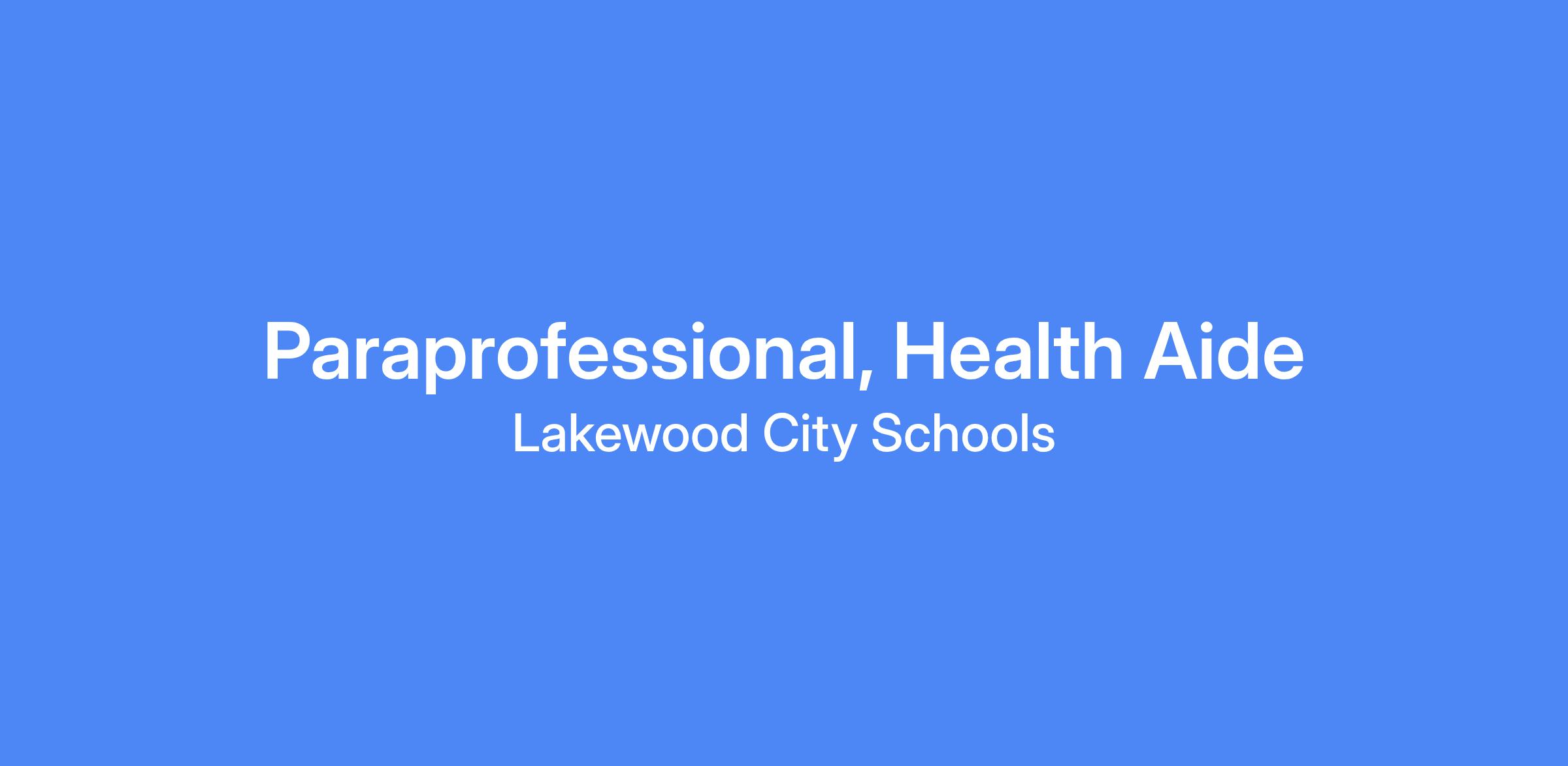 Paraprofessional, Health Aide: Harding Middle School; 2025-2026 school year; six and one half (6.5) paid hours with 30 minutes unpaid lunch; must have or obtain an educational aide permit from the Ohio Department of Education and meet the standards of Every Student Succeeds Act (ESSA); responsible to building principal, Student Services administration, and/or designee.