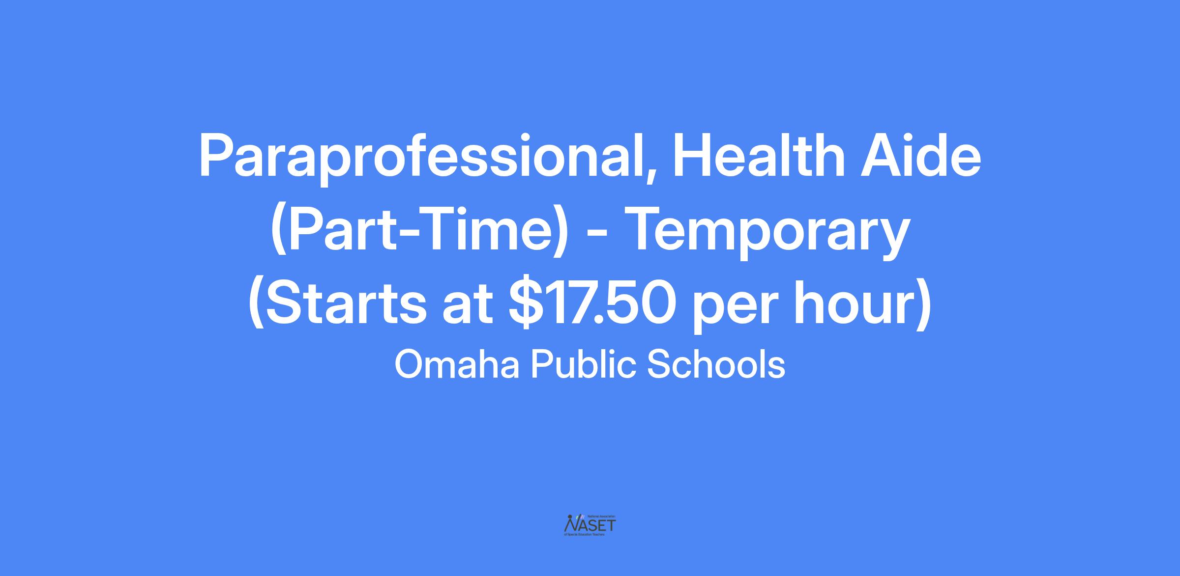 POSITION/JOB TITLE: Health Aide Paraprofessional - Part-Time