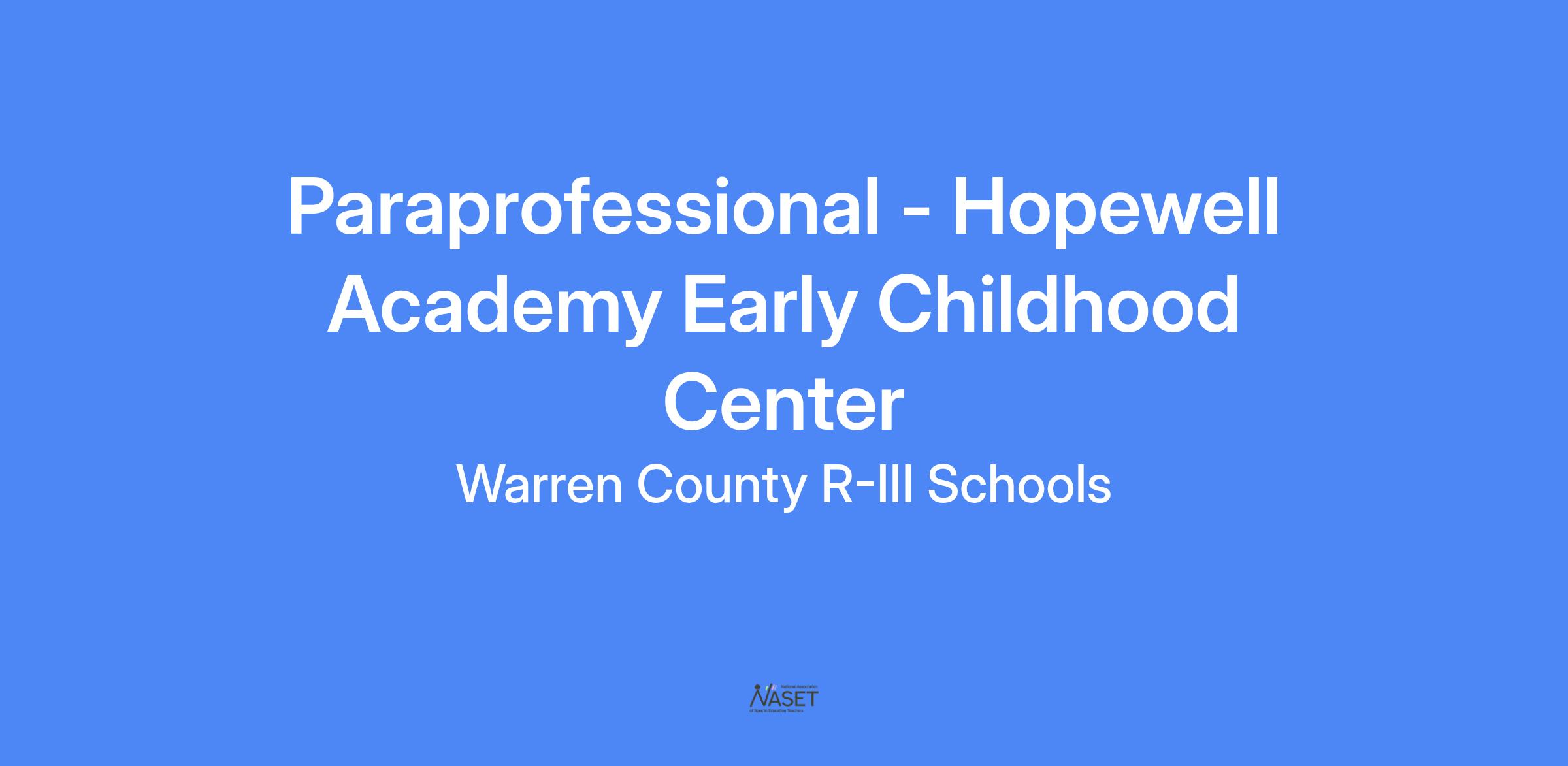 Paraprofessional - Hopewell Academy Early Childhood Center
