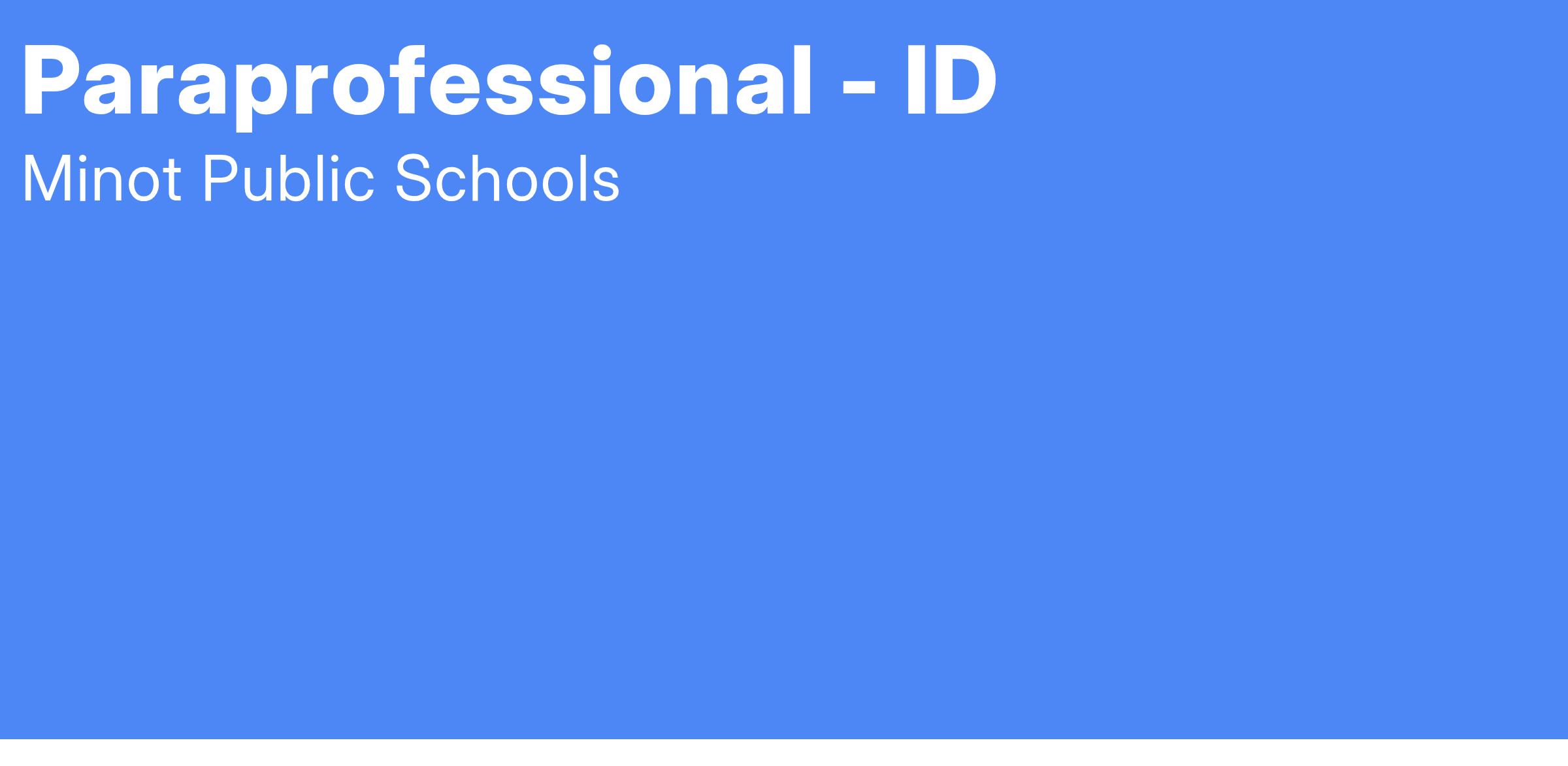 A valid North Dakota State Driver’s License may be required, Paraprofessional certification from North Dakota Department of Public Instruction is required; Crisis Prevention intervention [CPI] training and certification may be required for some incumbents; CPR and First Aid training is preferred.