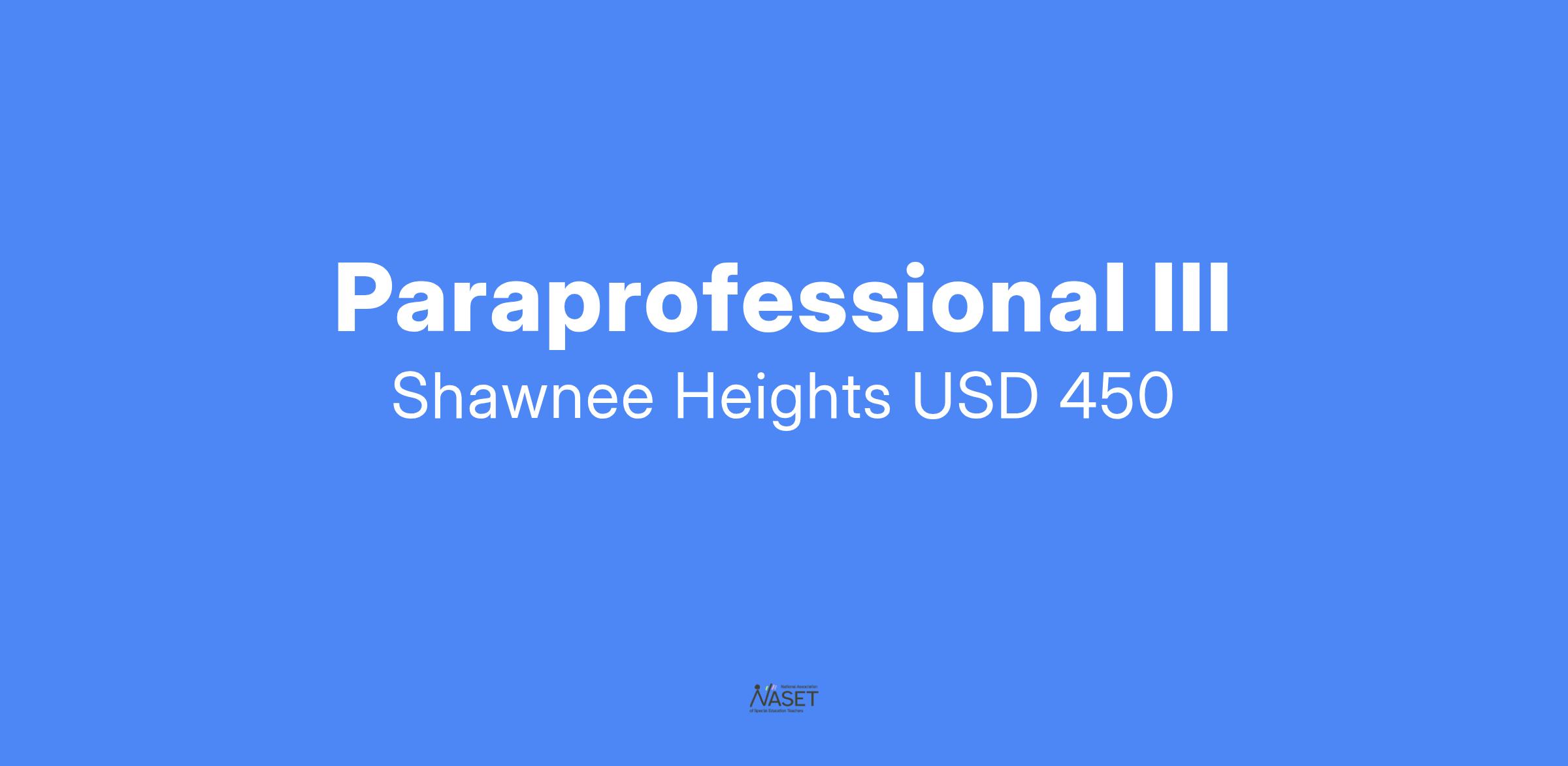 Title: Paraprofessional III at Shawnee Heights Elementary School