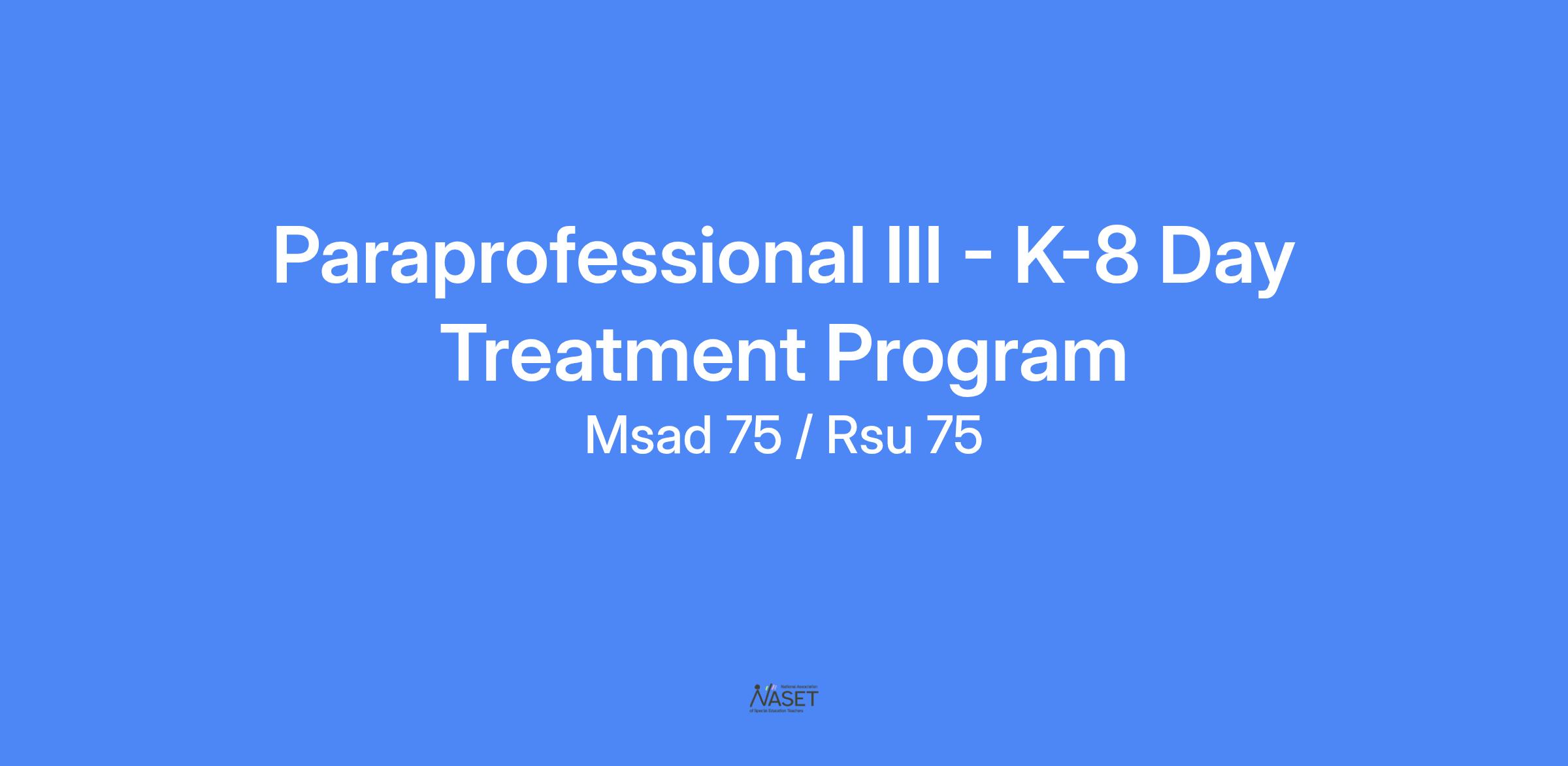 MSAD 75 is seeking a Paraprofessional III - K-8 Day Treatment Program to join our vibrant educational community. Together, we can inspire the next generation of learners and leaders.