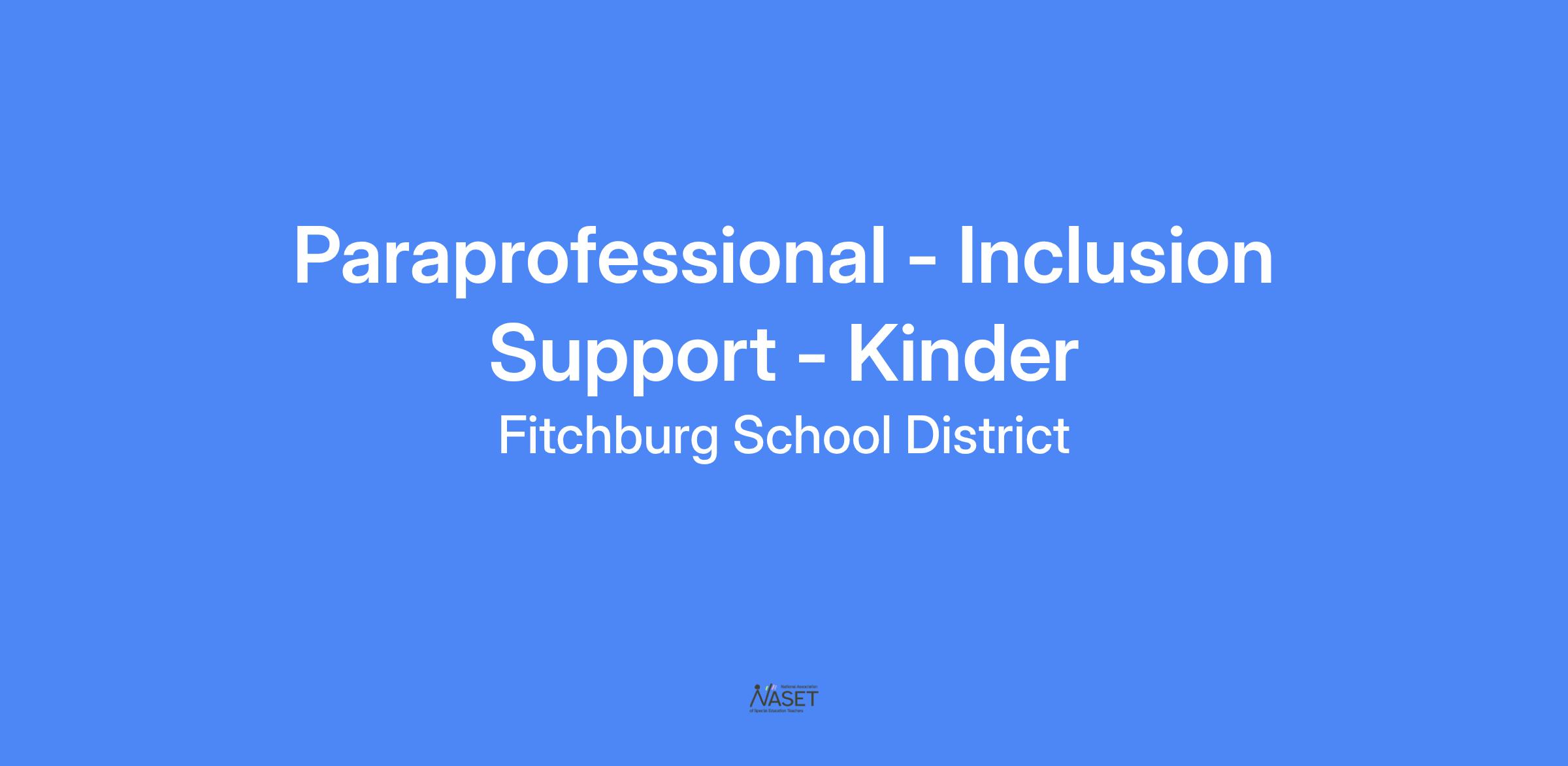 Paraprofessionals will assist teachers in providing an innovative, high-quality education program designed to meet the needs of the children in the Fitchburg Public Schools. Inclusion support paraprofessionals are typically assigned to general education classrooms.