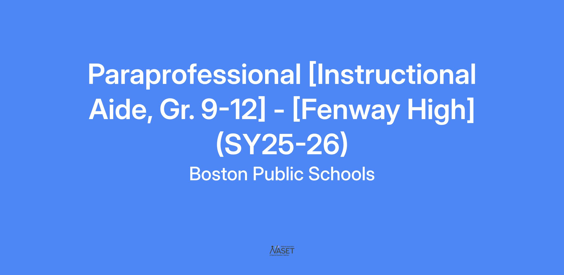 Paraprofessional [Instructional Aide, Gr. 9-12] - [Fenway High] (SY25-26)