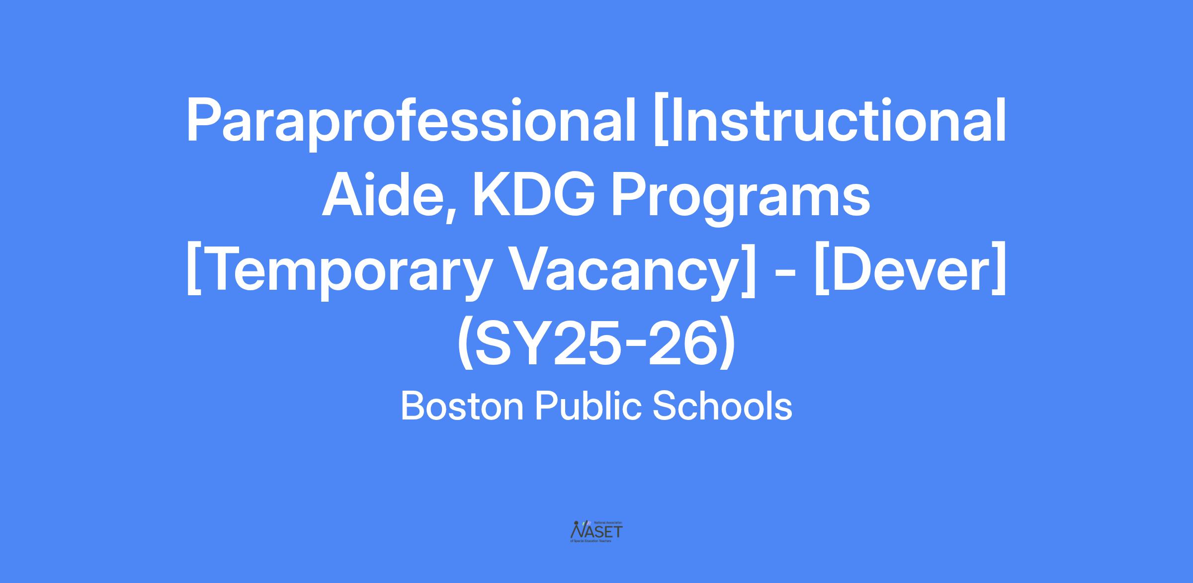 Paraprofessionals will assist teachers in providing an innovative, high quality education program designed to meet the needs of the children in the Boston Public Schools. Paraprofessionals will work with school staff to create an educational environment in which quality and continuity are key factors in educating the students of the Boston Public Schools.