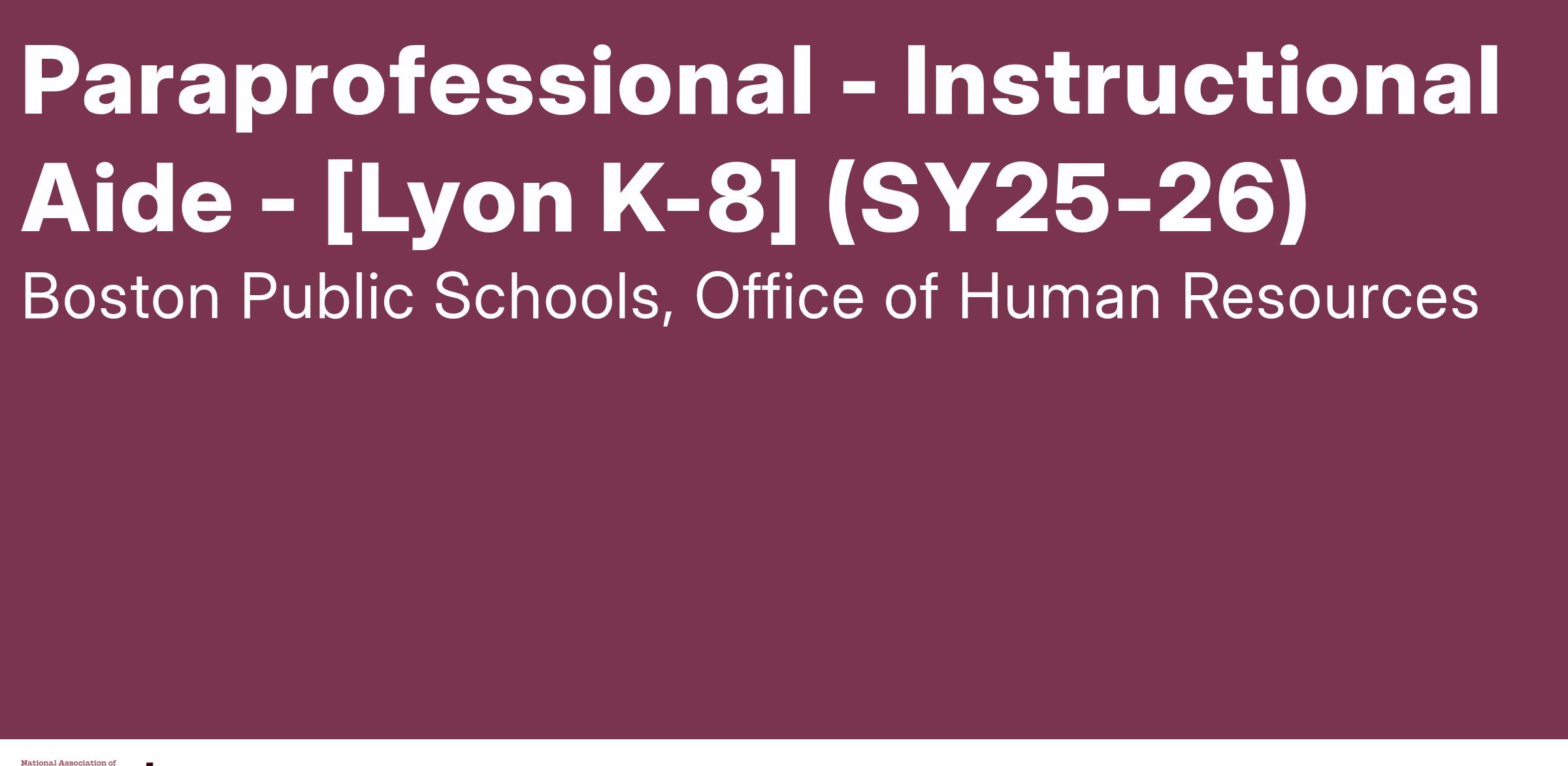 Paraprofessionals will assist teachers in providing an innovative, high quality education program designed to meet the needs of the children in the Boston Public Schools. Paraprofessionals will work with school staff to create an educational environment in which quality and continuity are key factors in educating the students of the Boston Public Schools.