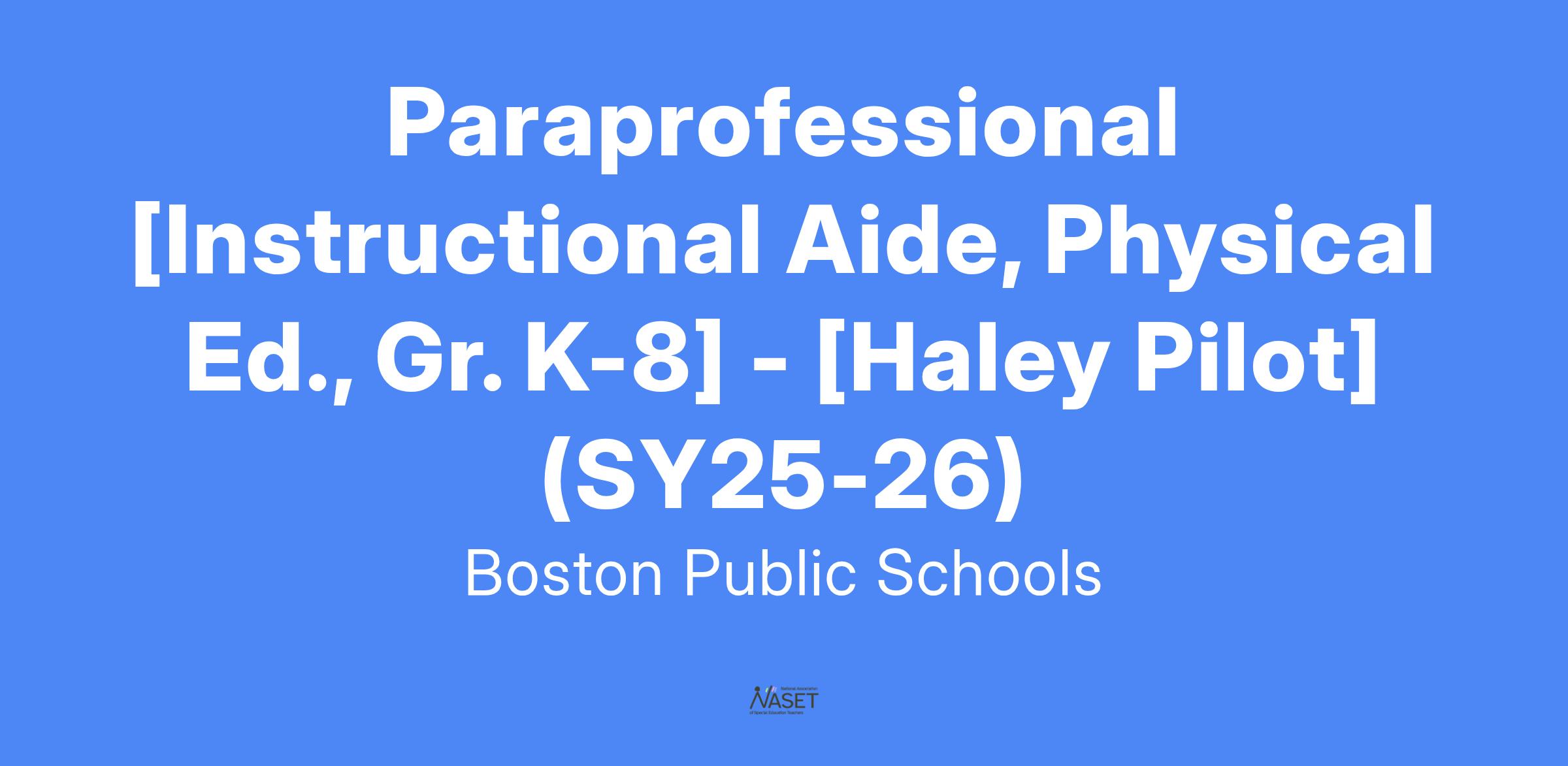 Paraprofessional [Instructional Aide, Physical Ed., Gr. K-8] - [Haley Pilot] (SY25-26)