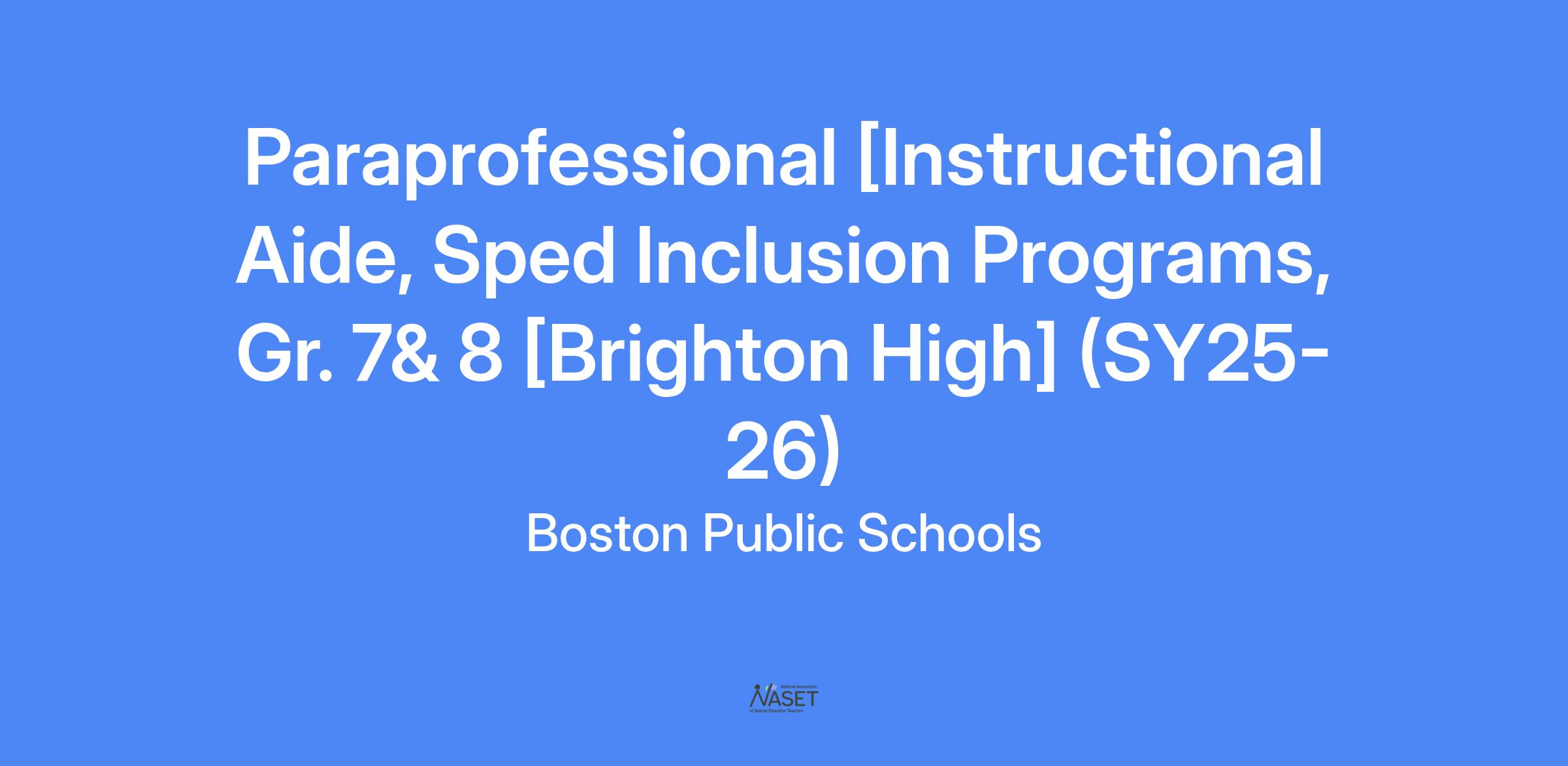 Paraprofessionals will assist teachers in providing an innovative, high quality education program designed to meet the needs of the children in the Boston Public Schools. Paraprofessionals will work with school staff to create an educational environment in which quality and continuity are key factors in educating the students of the Boston Public Schools.