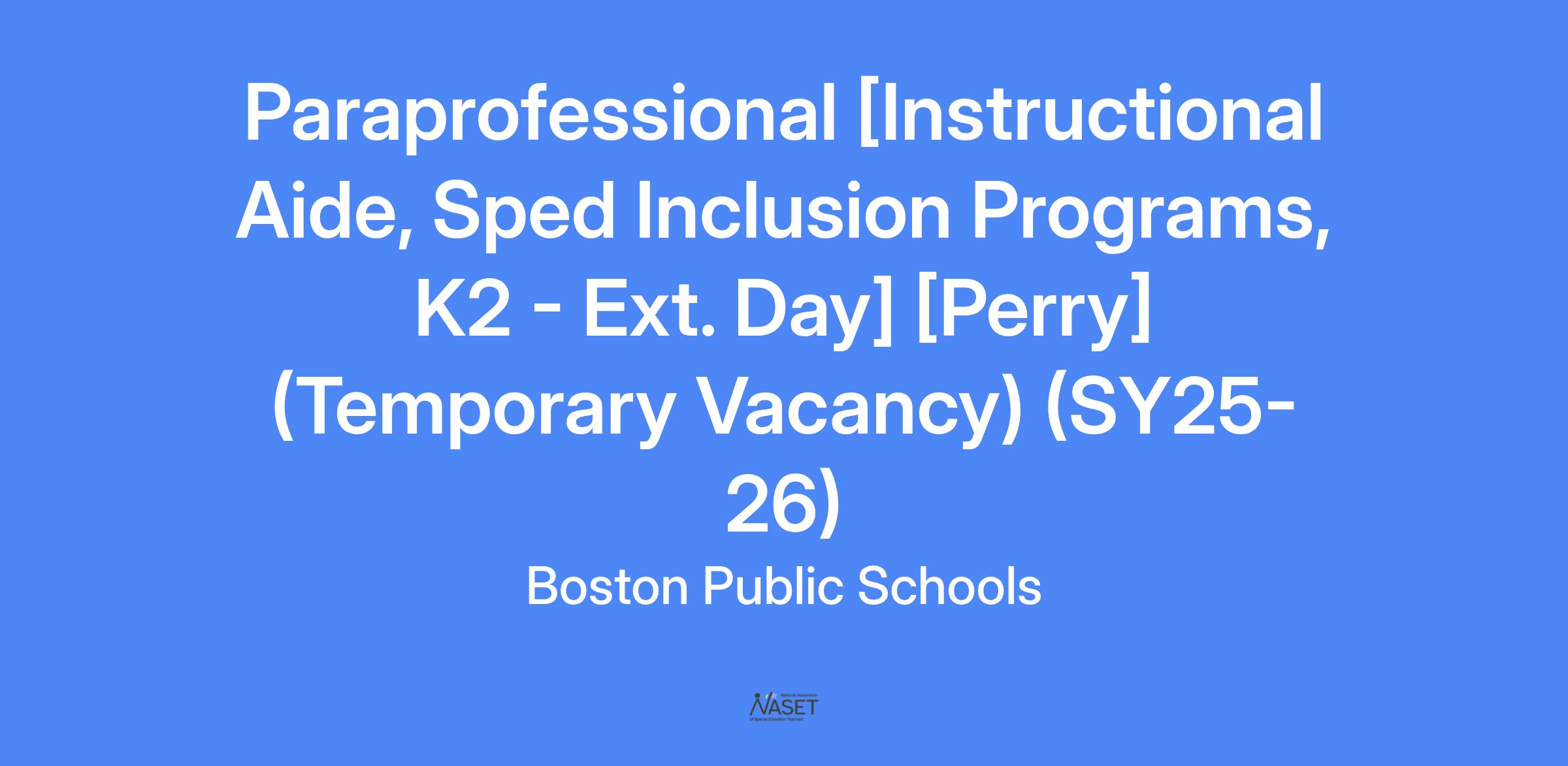 Paraprofessionals will assist teachers in providing an innovative, high quality education program designed to meet the needs of the children in the Boston Public Schools. Paraprofessionals will work with school staff to create an educational environment in which quality and continuity are key factors in educating the students of the Boston Public Schools.