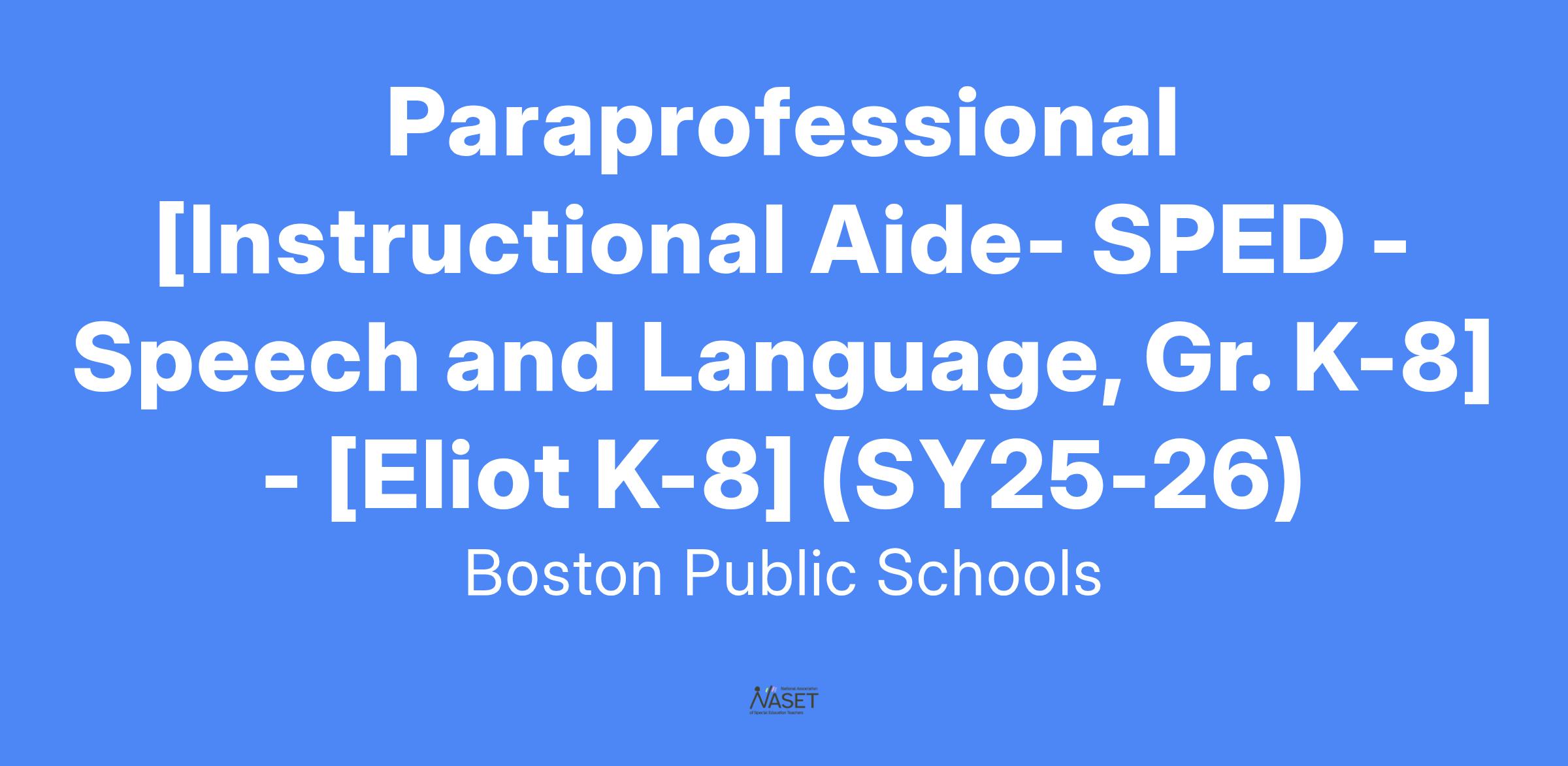 Paraprofessional [Instructional Aide- SPED - Speech and Language, Gr. K-8] - [Eliot K-8] (SY25-26)