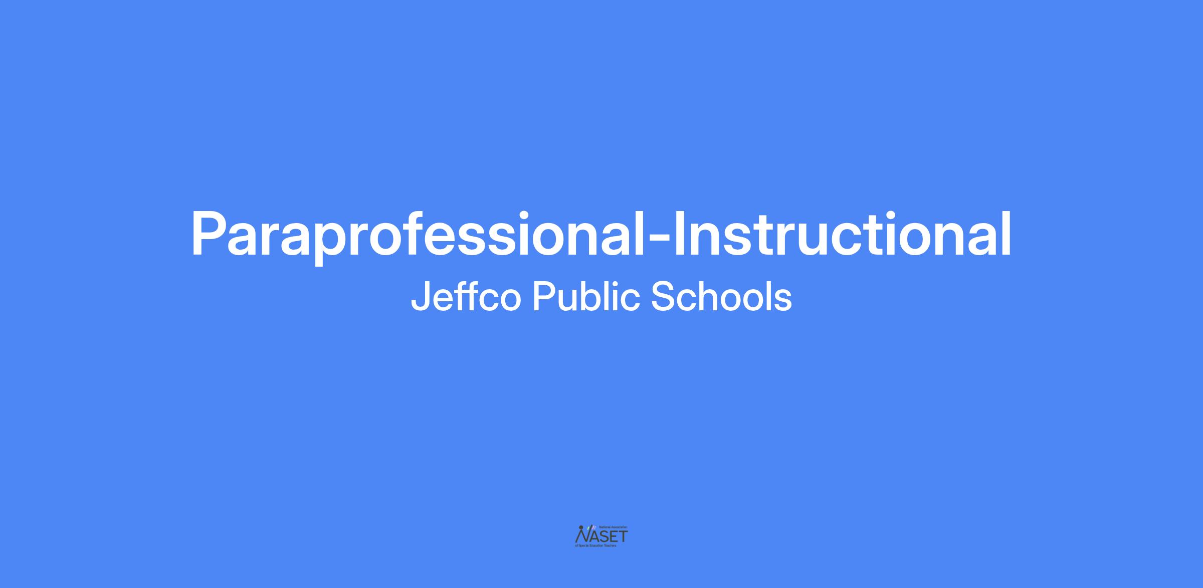 EDUCATION AND TRAINING: High school diploma/GED required. Jeffco paraprofessional training will be offered upon acceptance of a position and must be completed at first available training opportunity.