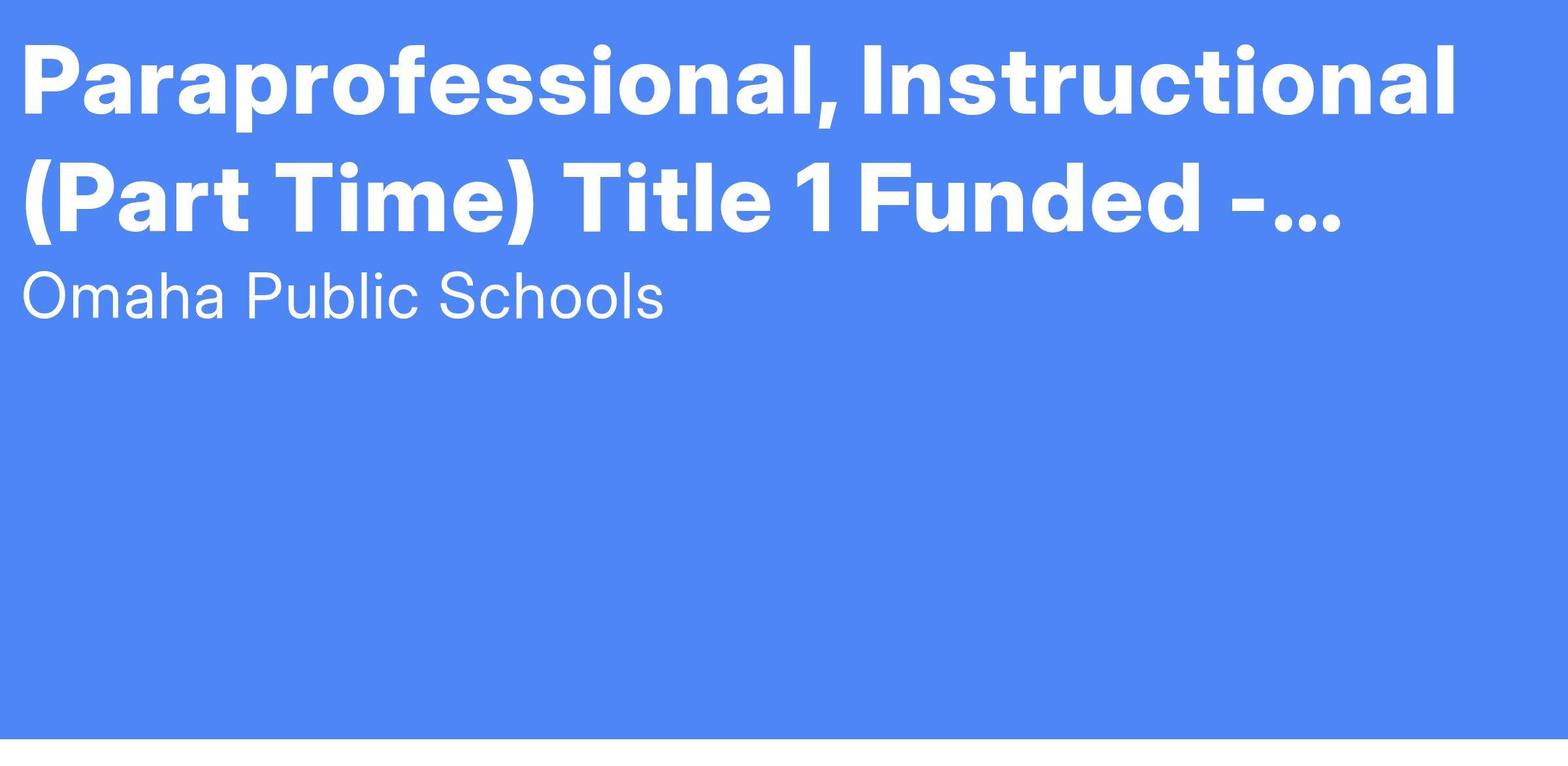 POSITION/JOB TITLE: Instructional/Educational Paraprofessional - Part Time - Title 1 Funded