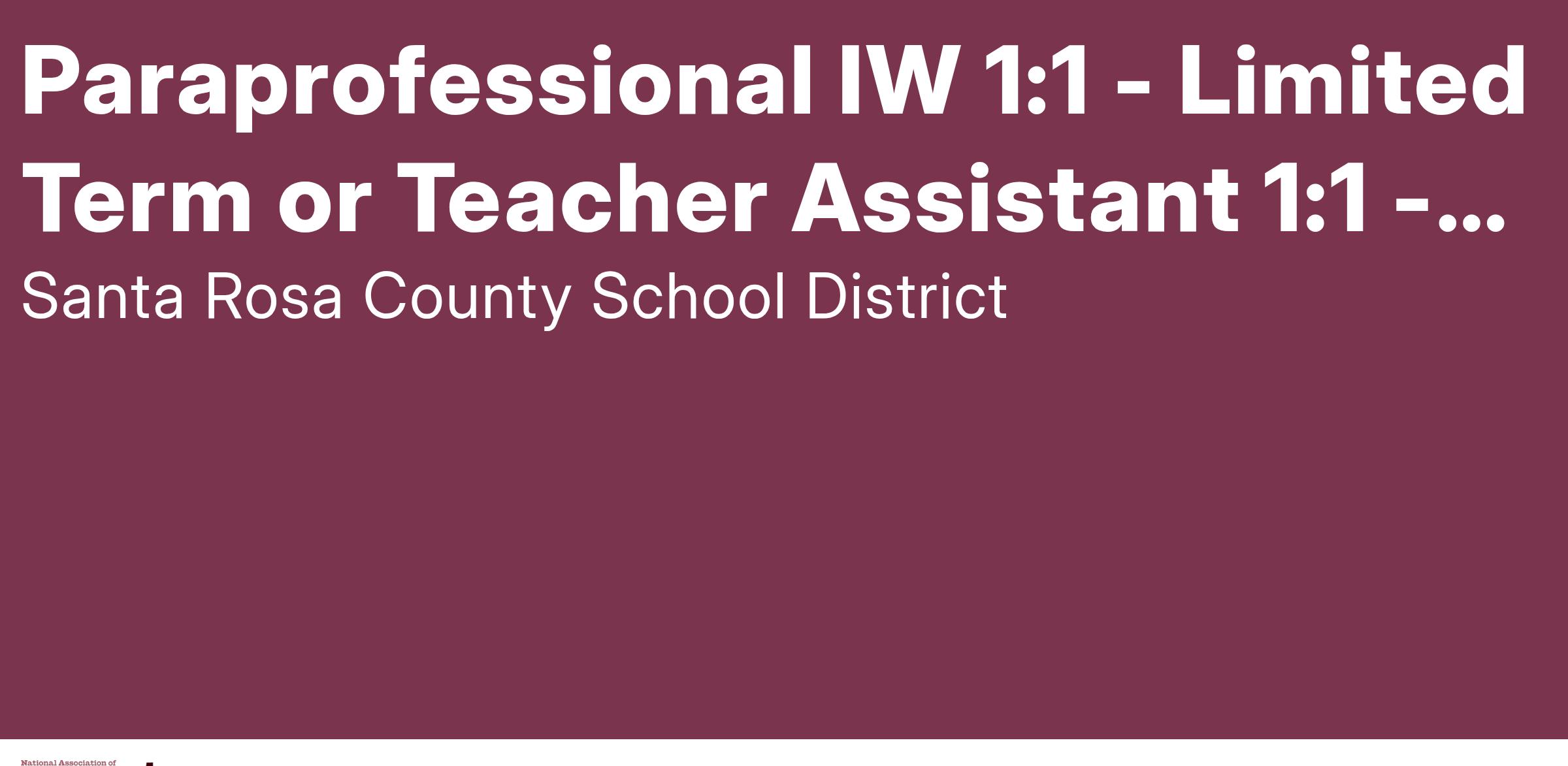 Paraprofessional IW 1:1 - Limited Term or Teacher Assistant 1:1 - Limited Term