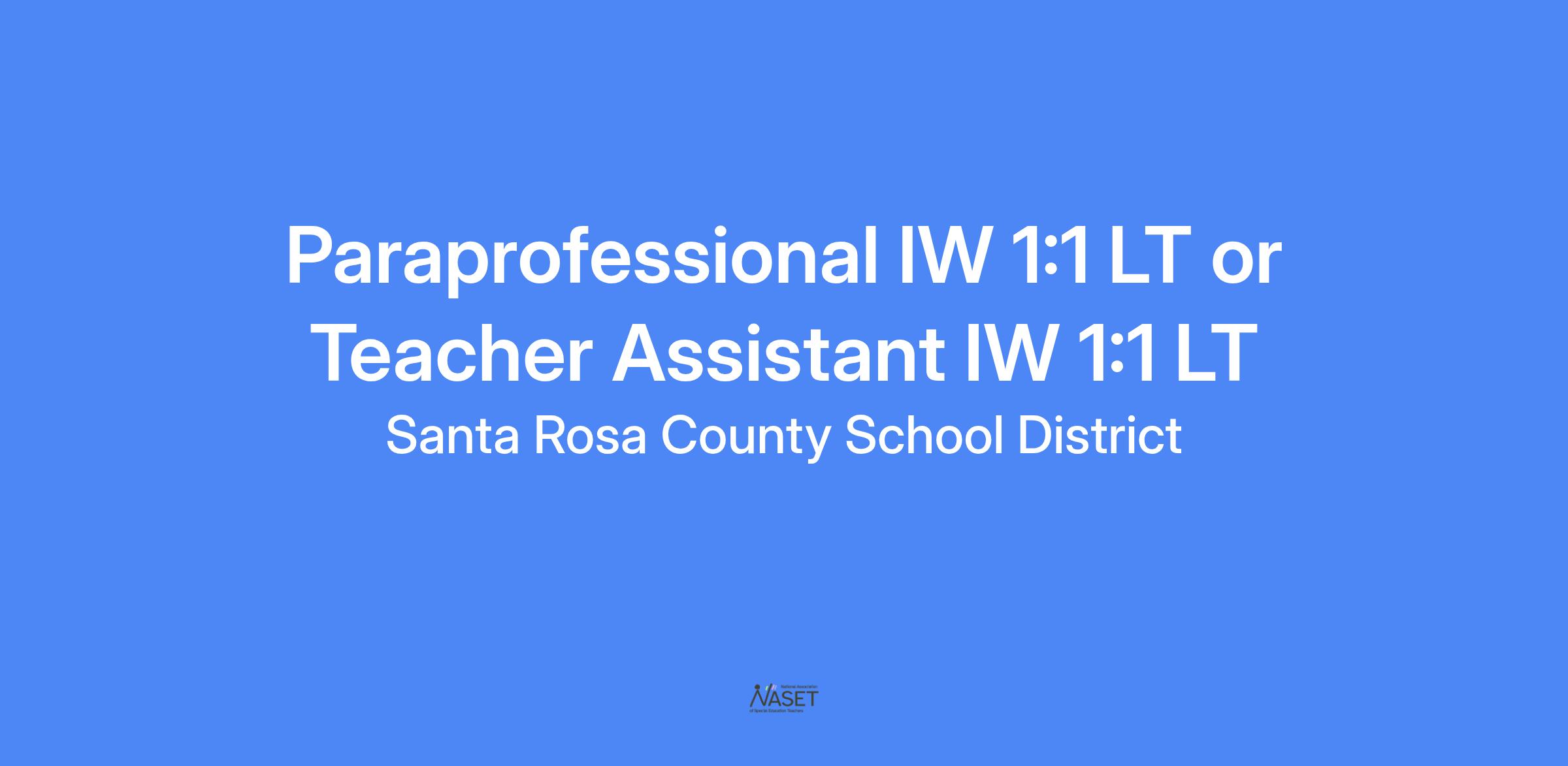 Paraprofessional IW 1:1 LT or Teacher Assistant IW 1:1 LT