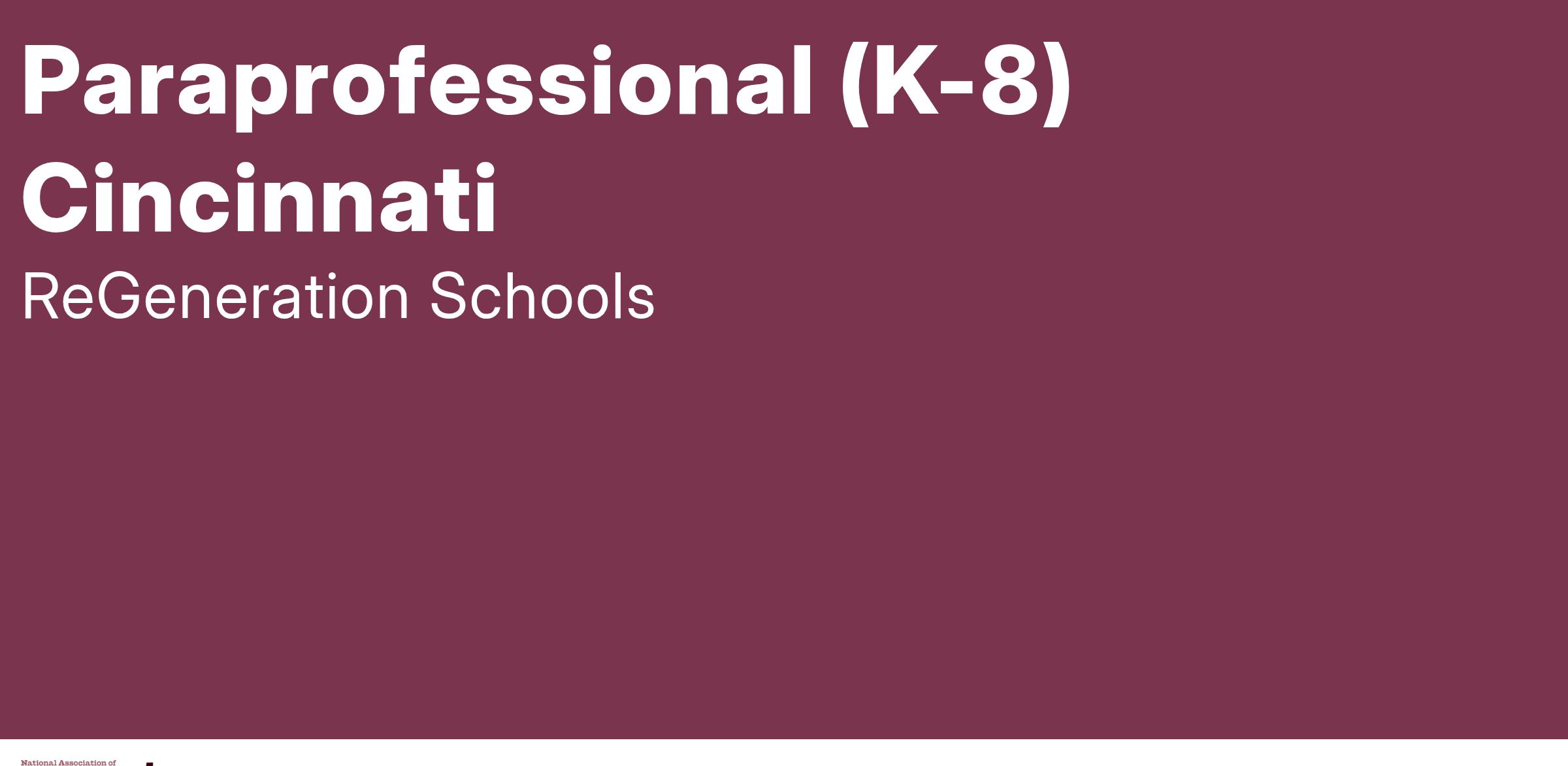 We are seeking an experienced full-time Paraprofessional to join Regeneration Schools. This individual will work closely with the general education and special education school team to supervise a student according to their Individualized Education Plan (IEP) that will help them develop their full potential while systematically increasing socially appropriate behavior.